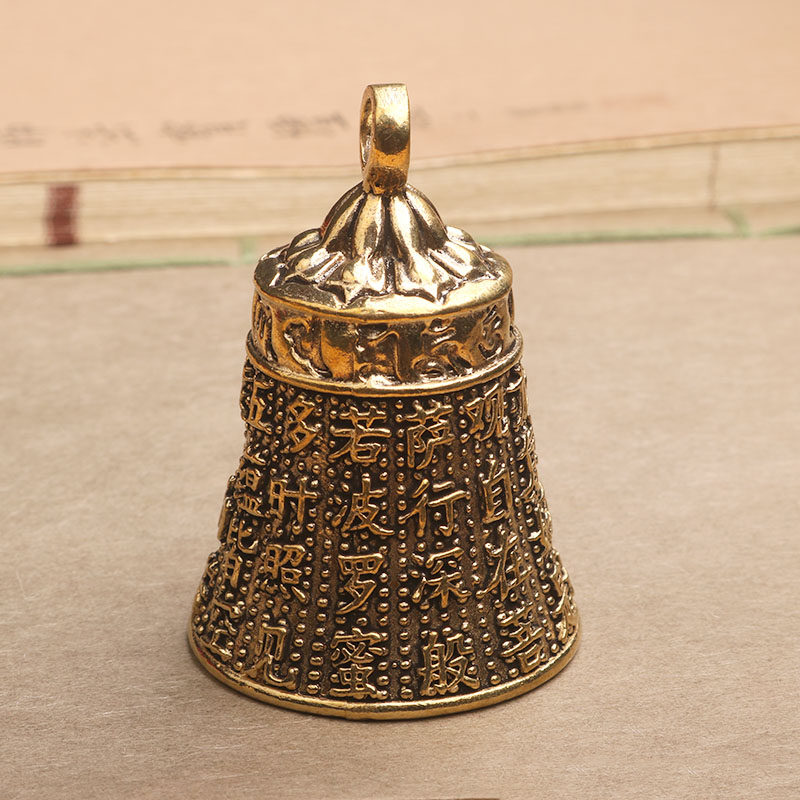 黄铜大号心经经文古钟铃铛挂件吊坠载车平安仿古挂件男女桌面摆件
