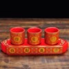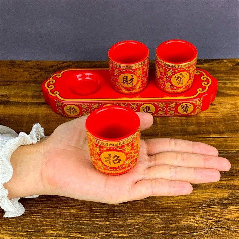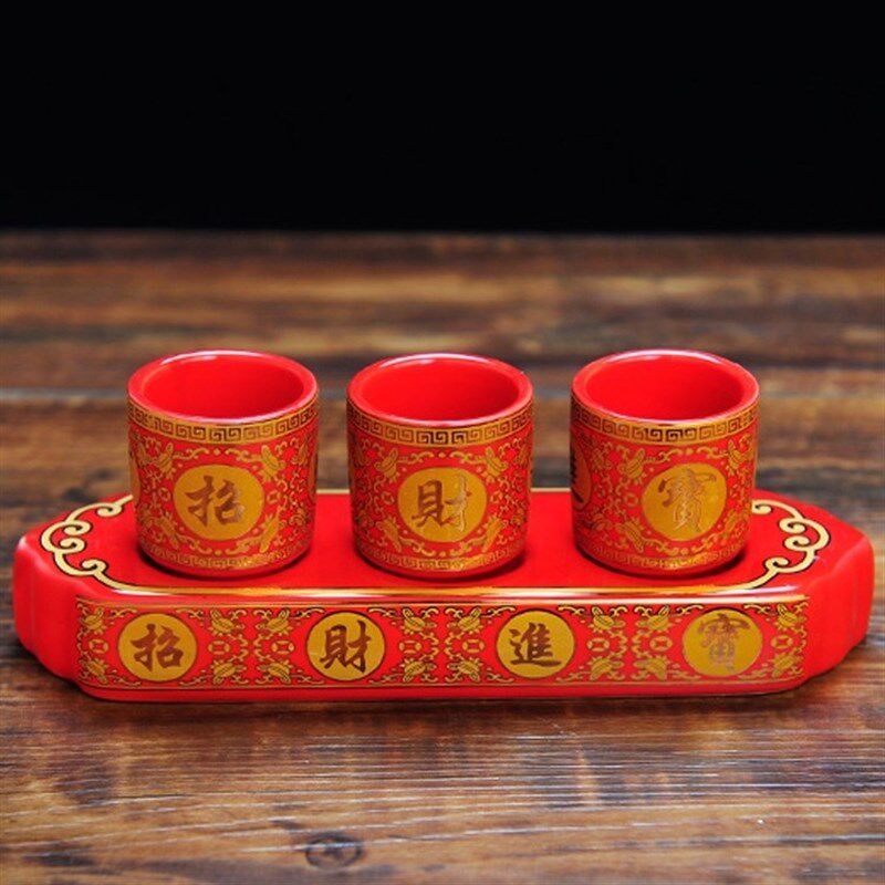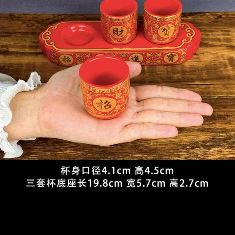 红色仙家酒杯 招财进宝三连杯 供奉财神L关公土地酒杯摆件