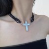 复古多层黑色串珠镶钻十字架项链女轻奢高级感暗黑y2k锁骨链颈链