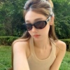 Jennie同款复古黑色猫眼欧美风偏光gm墨镜女方圆脸显瘦高级太阳镜
