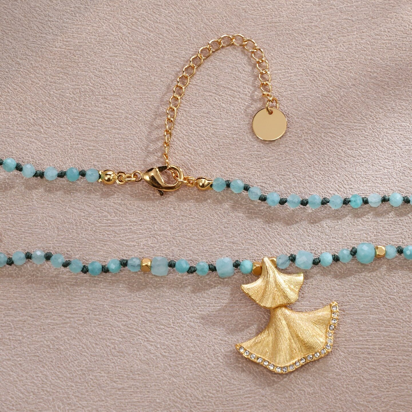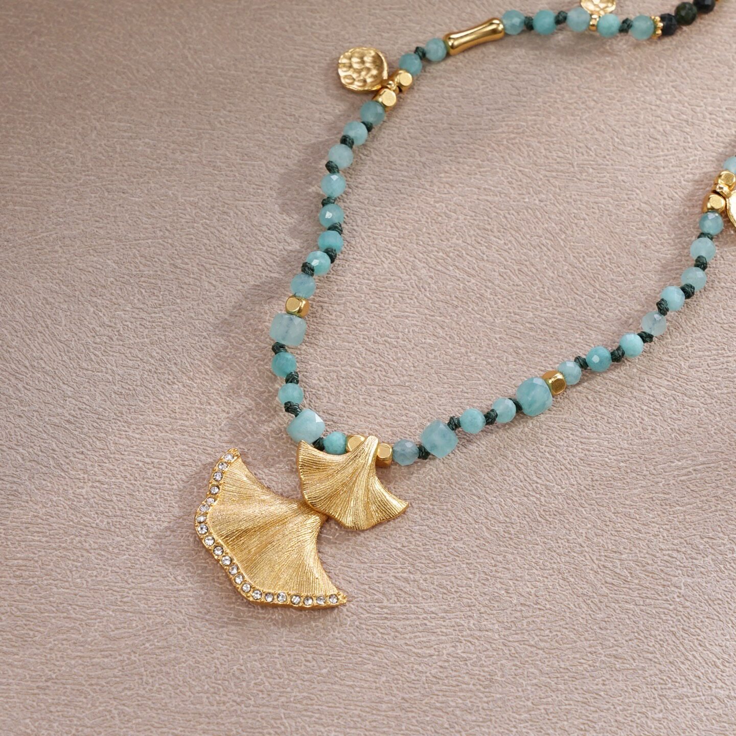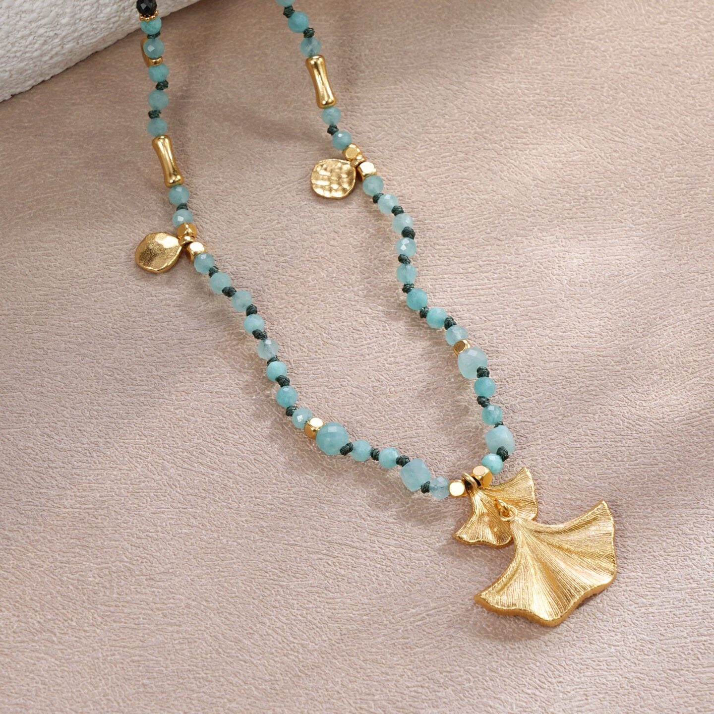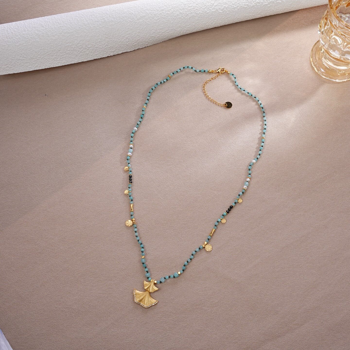 小众设计银杏叶复古风天然石串珠项链女轻奢高级感锁骨链颈链配饰