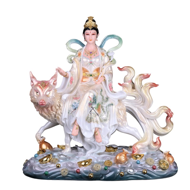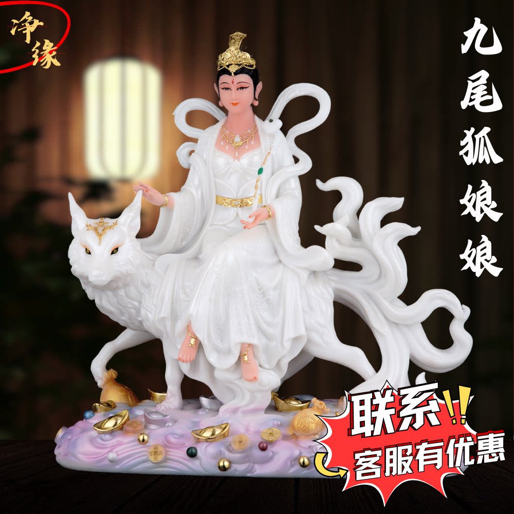 汉白玉九尾狐娘娘神像九尾娘娘真身九姑娘神像白狐娘娘像家用供奉