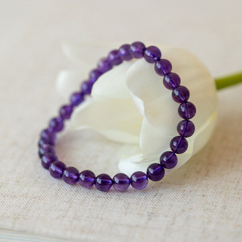 五台天然紫水晶手链女小众闺蜜礼物上岸散珠乌拉圭紫色水晶手串