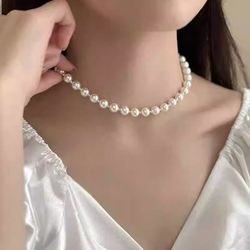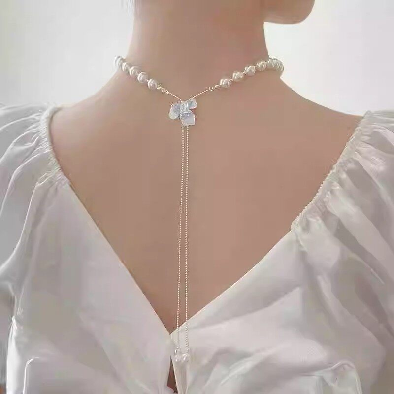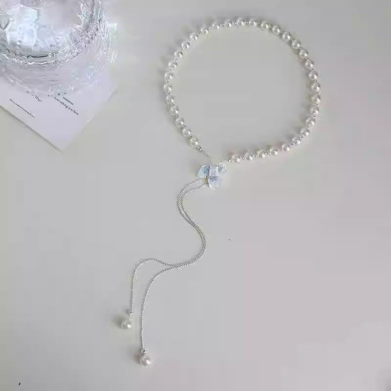 镶钻花瓣珍珠白色项链颈链抽拉式设计式项链女一款多戴2026年新款