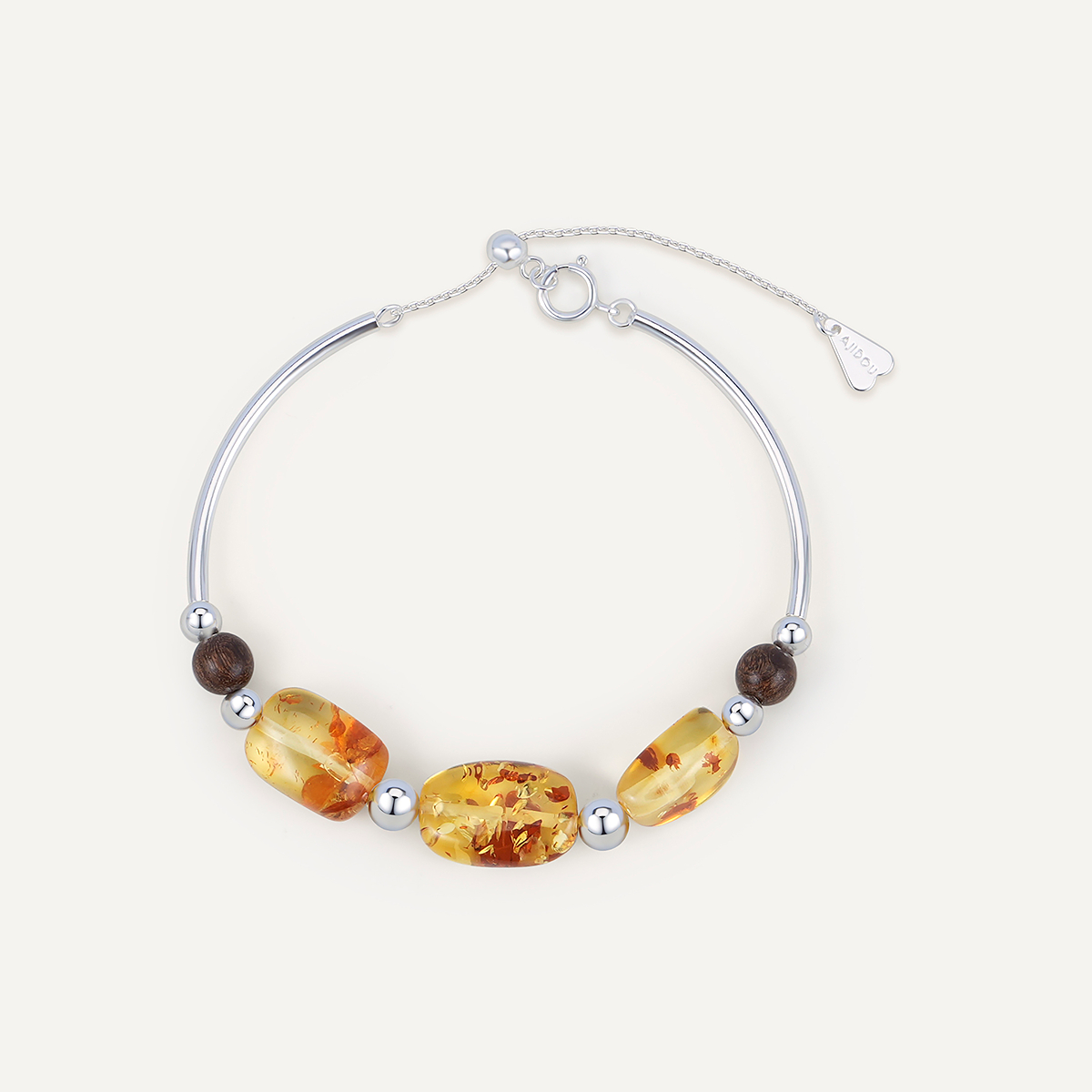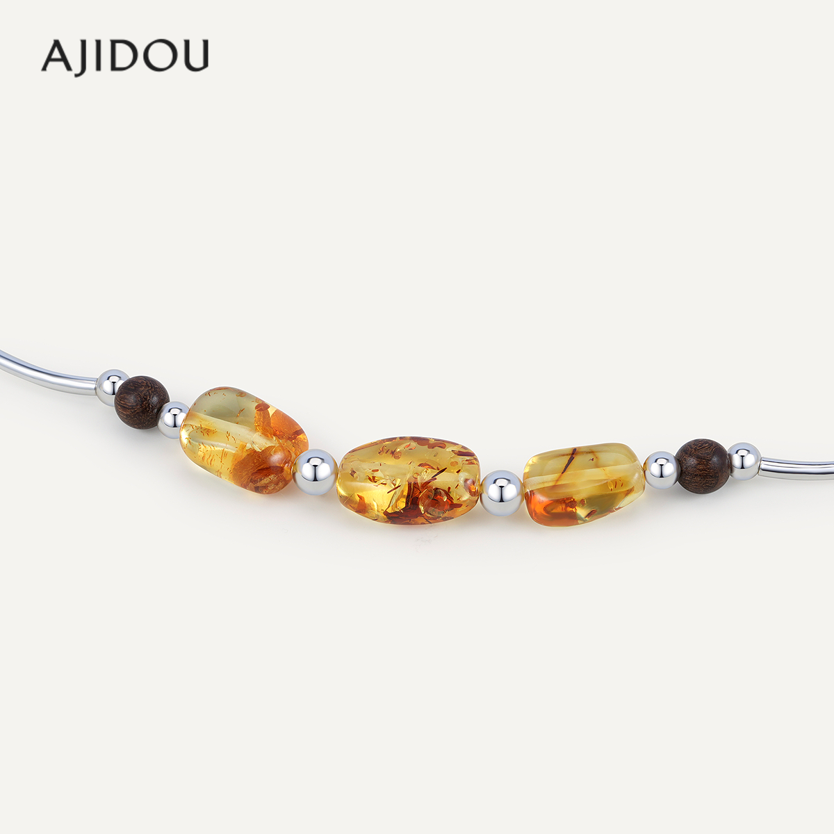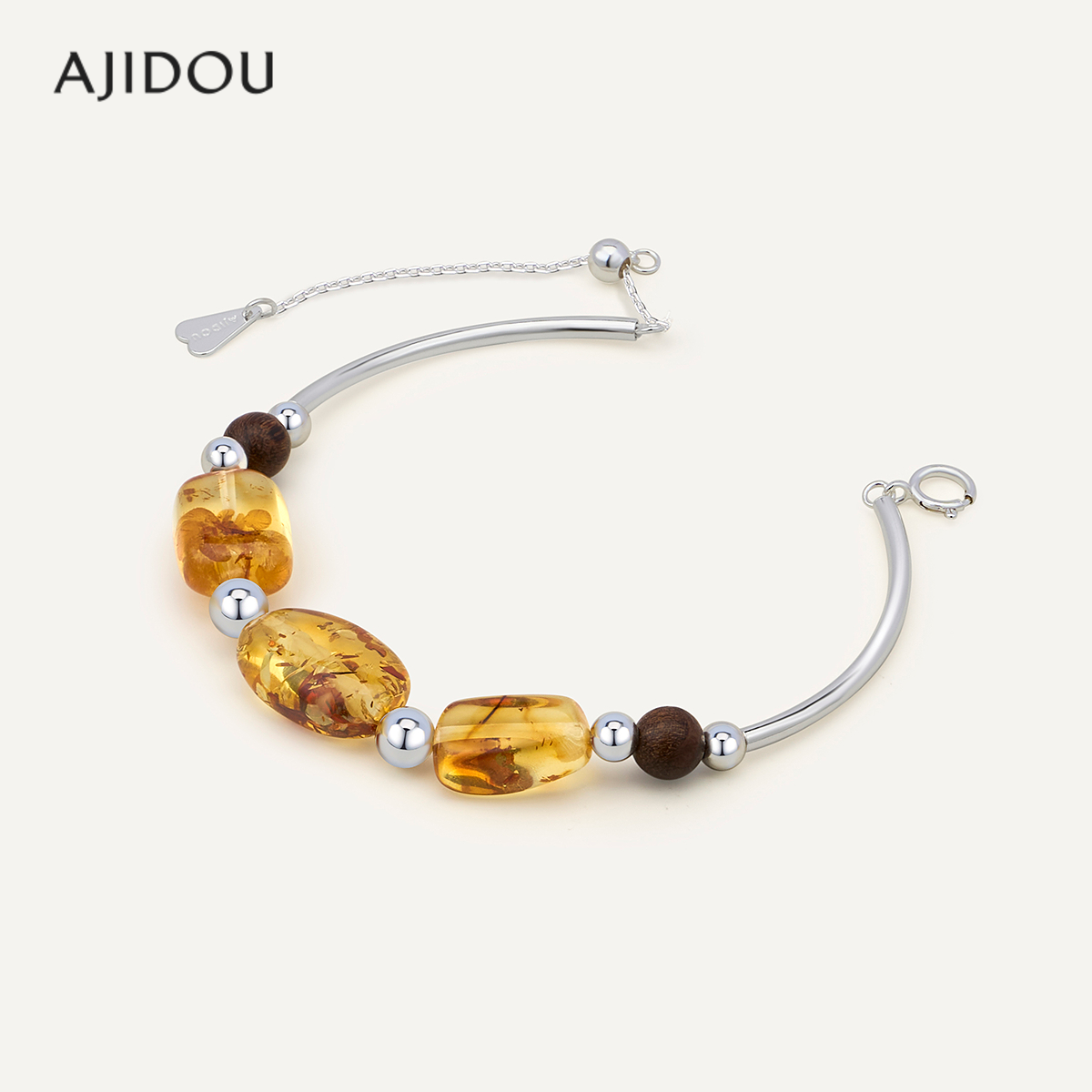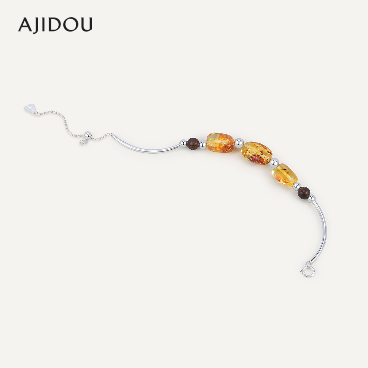 AJIDOU阿吉豆花珀胶囊系列925银休闲手链时尚气质手环手饰平安串