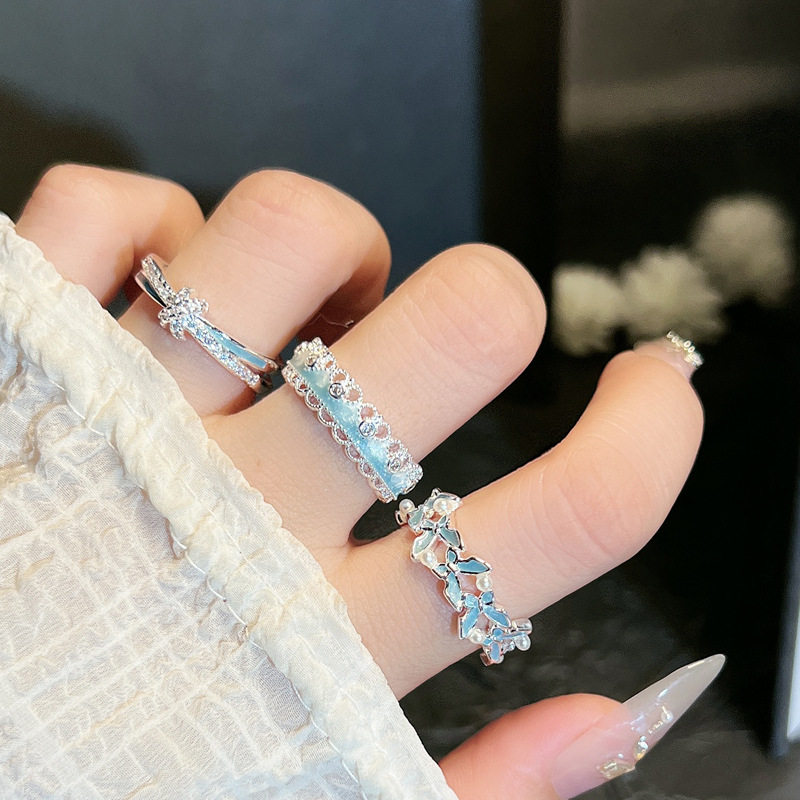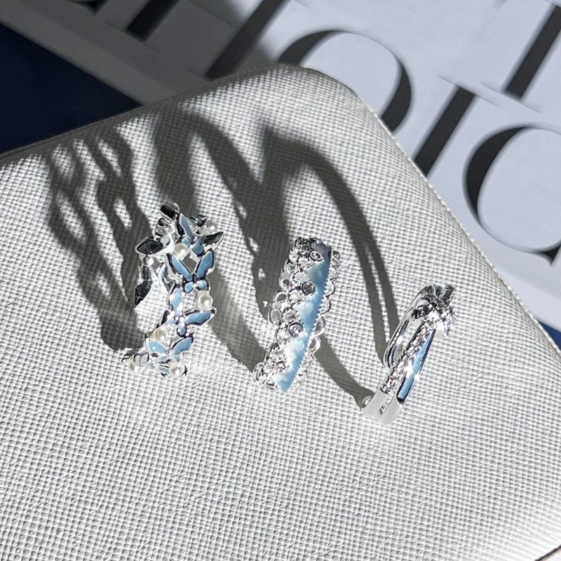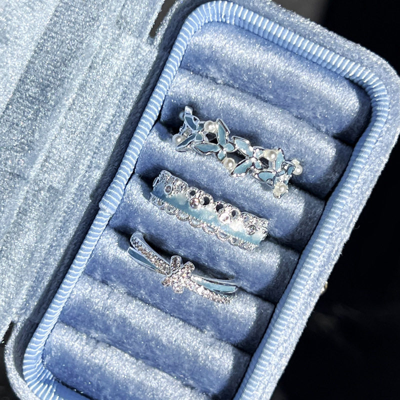 2026爆款蓝色珐琅灵动蝴蝶戒指女冷淡风渐变温柔百搭银白色指环潮