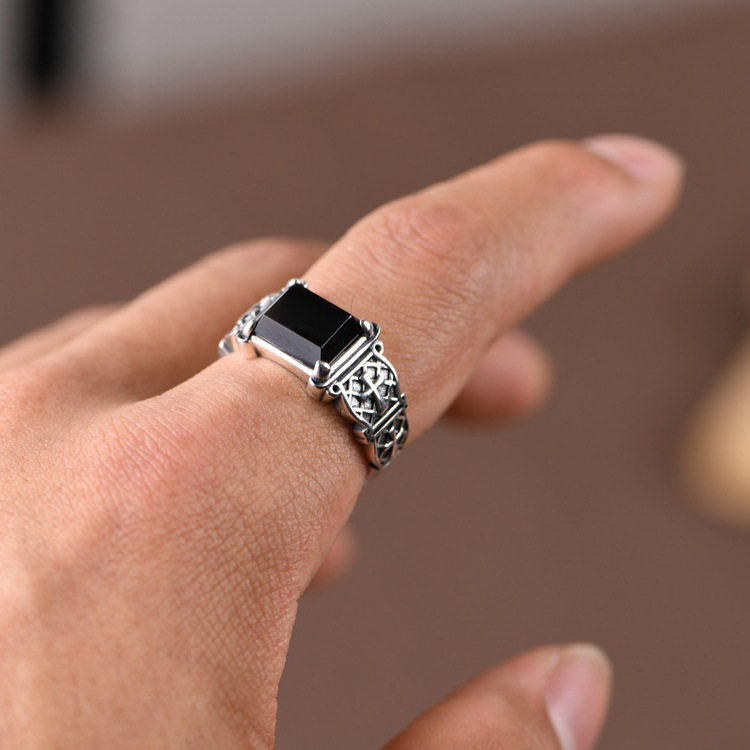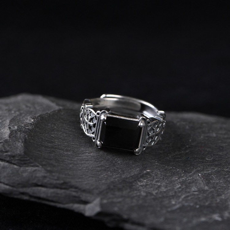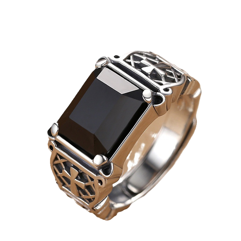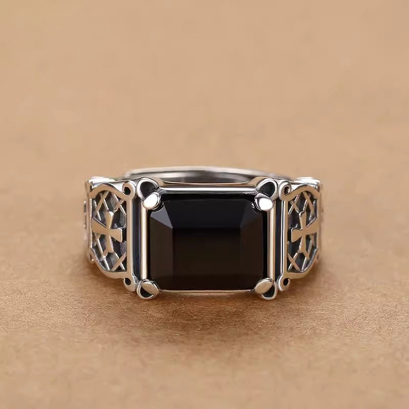 男士十字架戒指个性霸气潮流嘻哈单身戒黑色石开口指环男