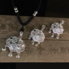 s999纯银平安锁宝宝镂空项链吊坠轻奢小众长命锁编织绳情侣银礼物