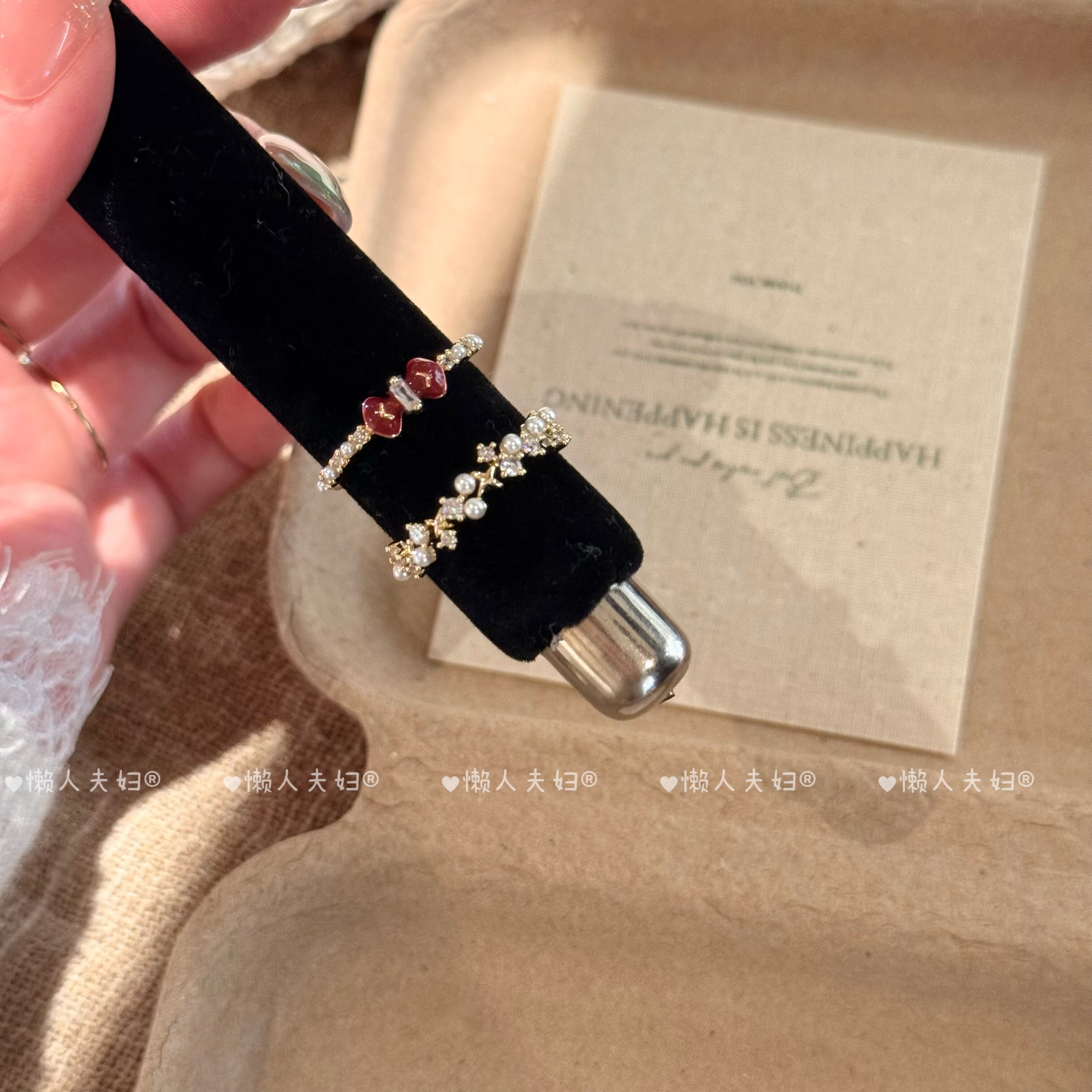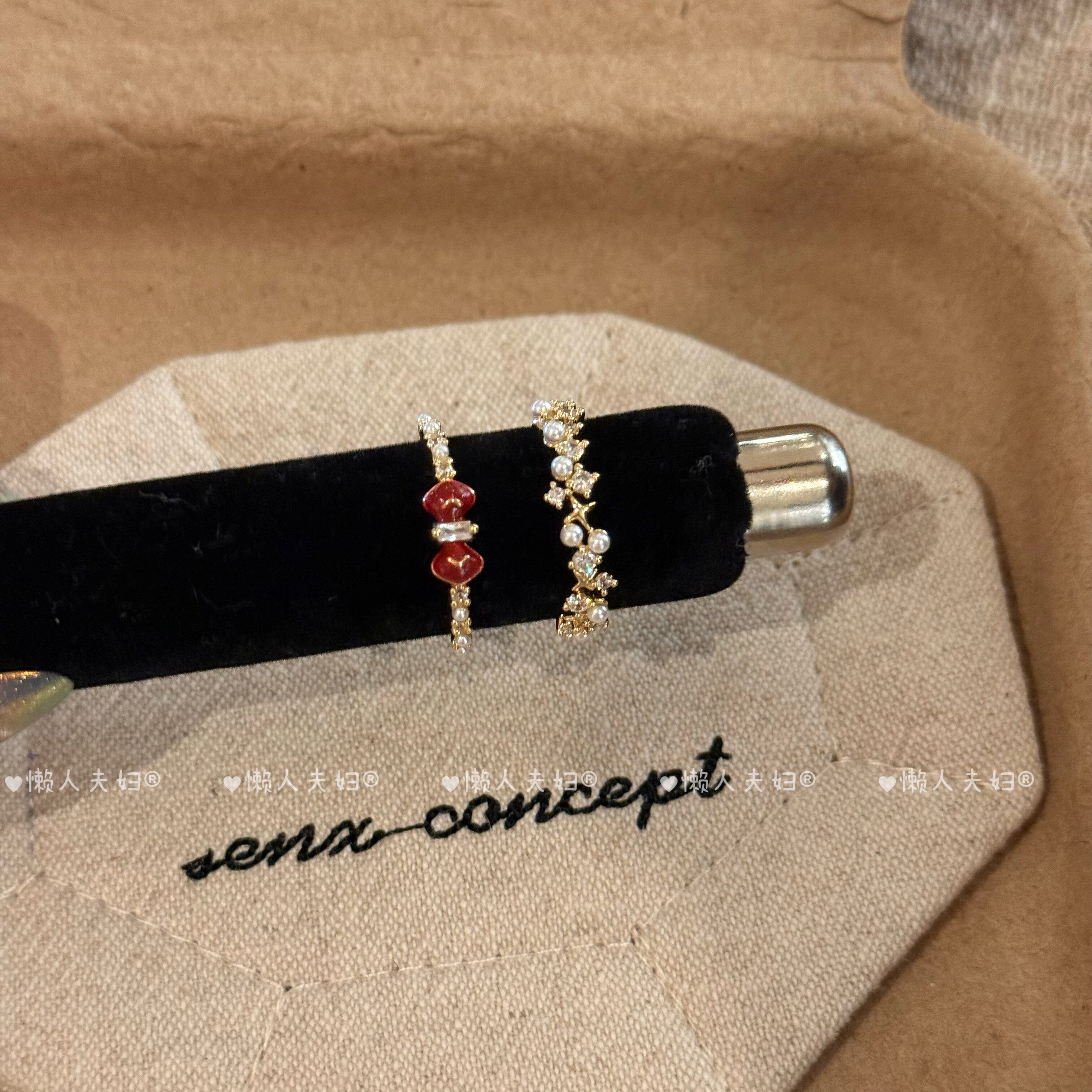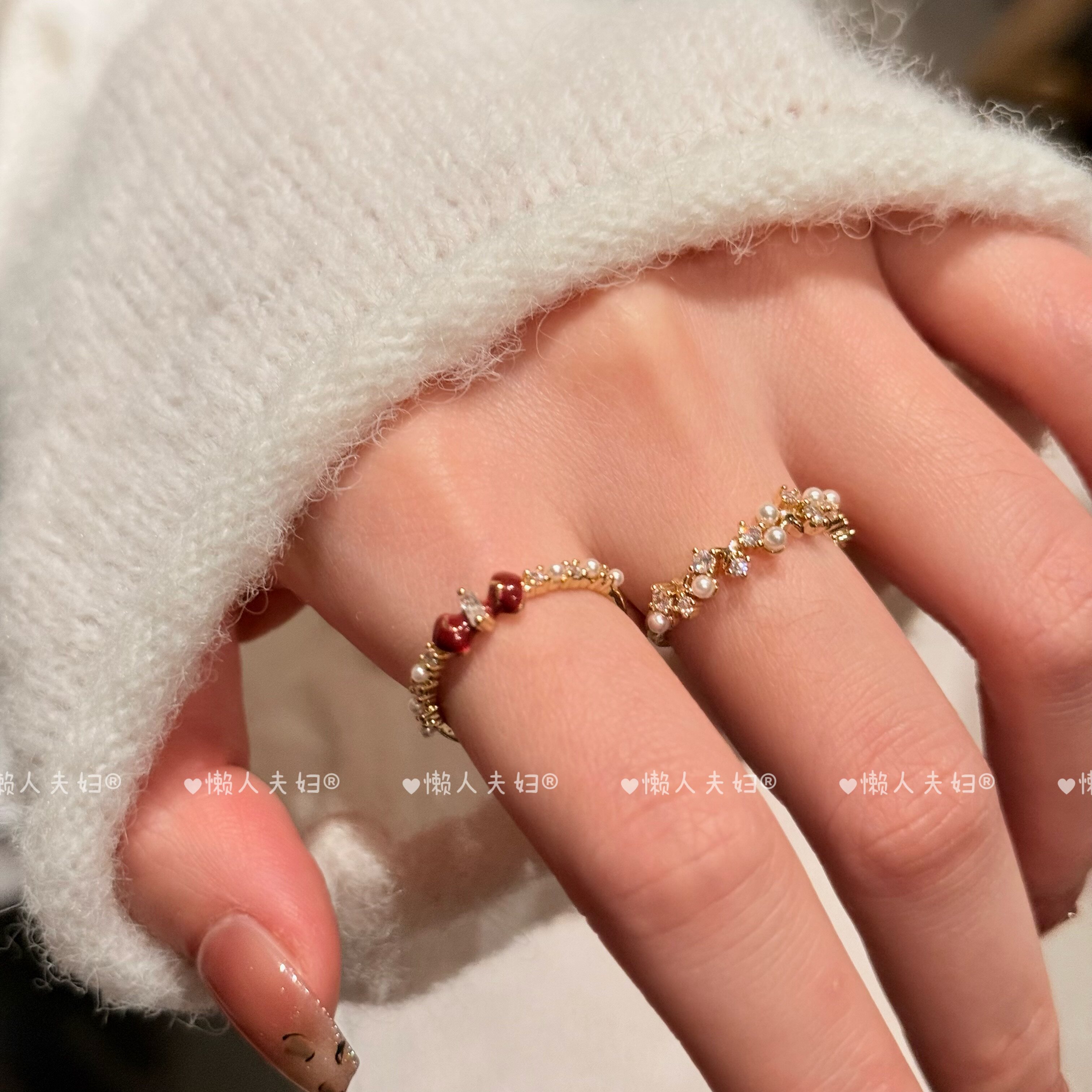 当前位置:首页>商品详情>安可拉红色蝴蝶结珍珠锆石叠戴戒指女小众高级感轻奢精致显白指环