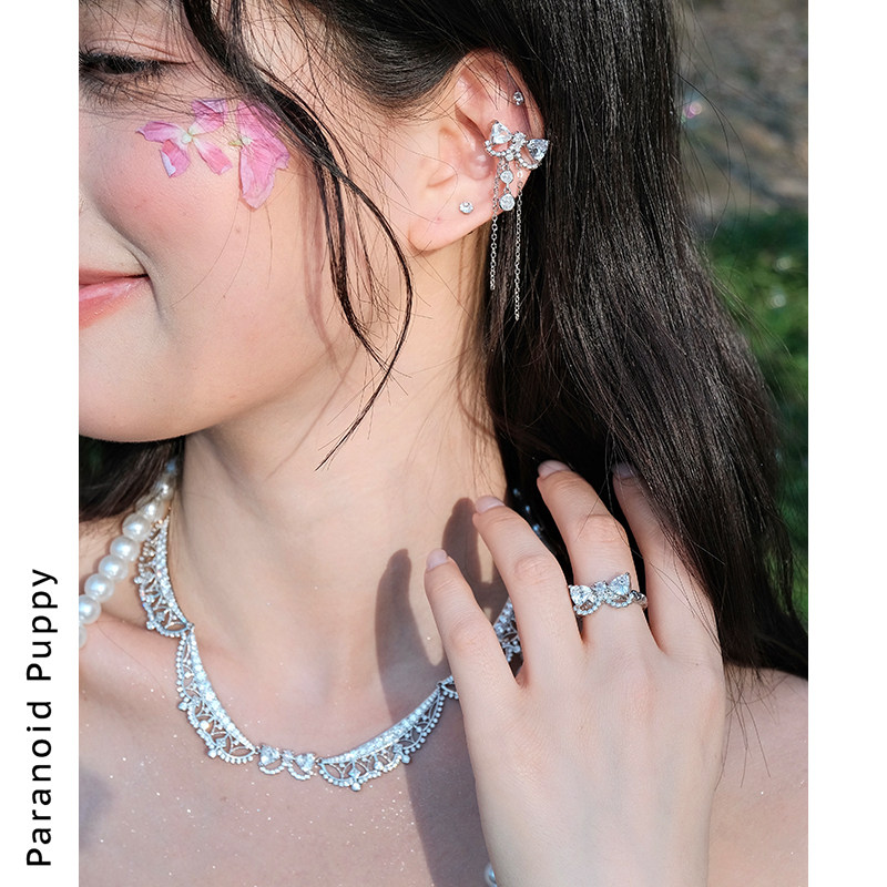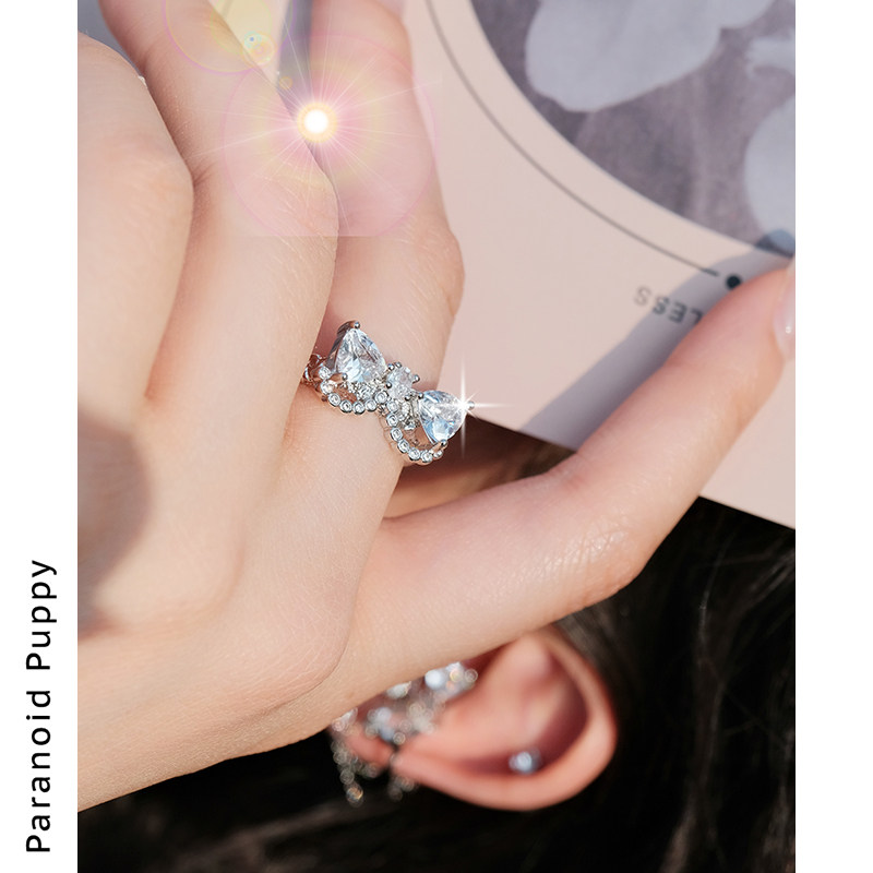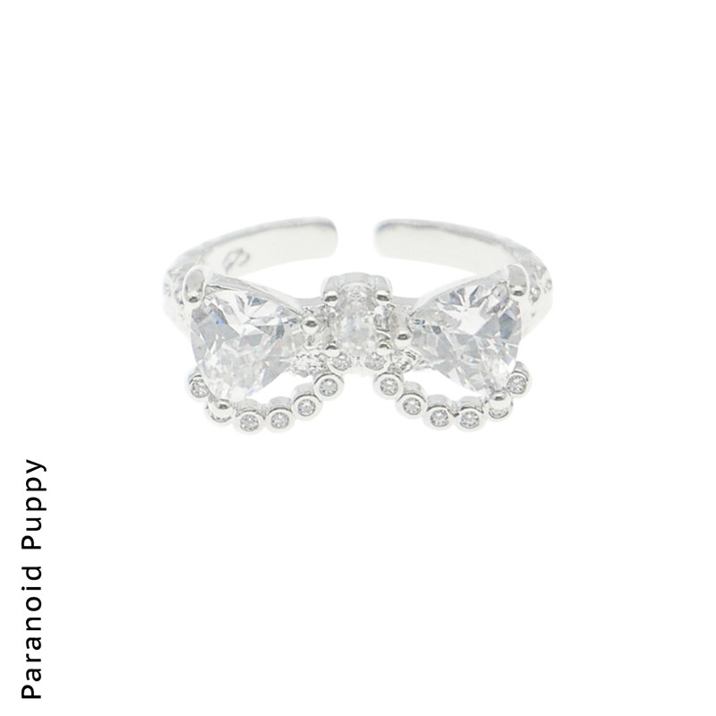 现货·古董少女~蕾·蝴蝶结白色锆925纯银戒指女小众轻奢食指戒