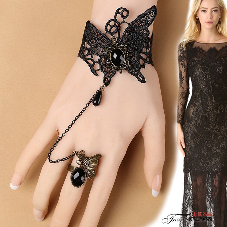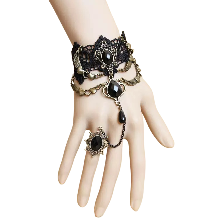lolita配饰黑色漫展cosplay手链戒指一体哥特暗黑系复古儿童饰品