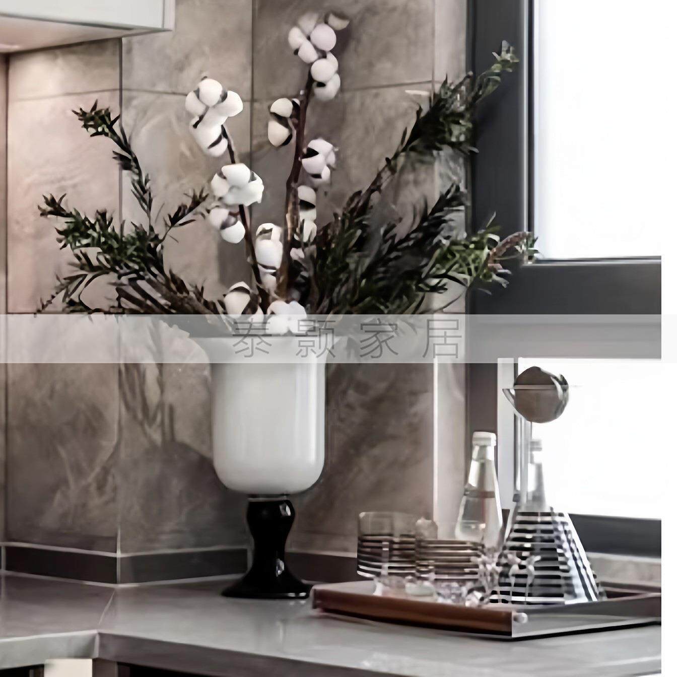 现代中古风奶白样板间厨房锅具花瓶花艺托盘橄榄油装饰品摆件搭配