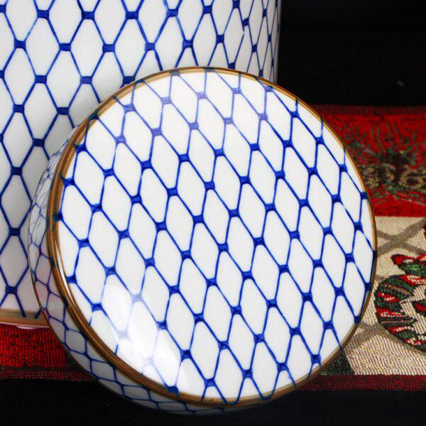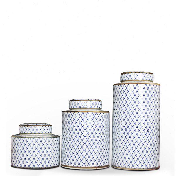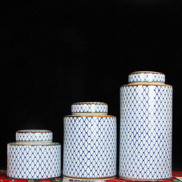 器陶瓷新中式博古架样板房储物罐三件套网格客厅玄关摆件简约现代