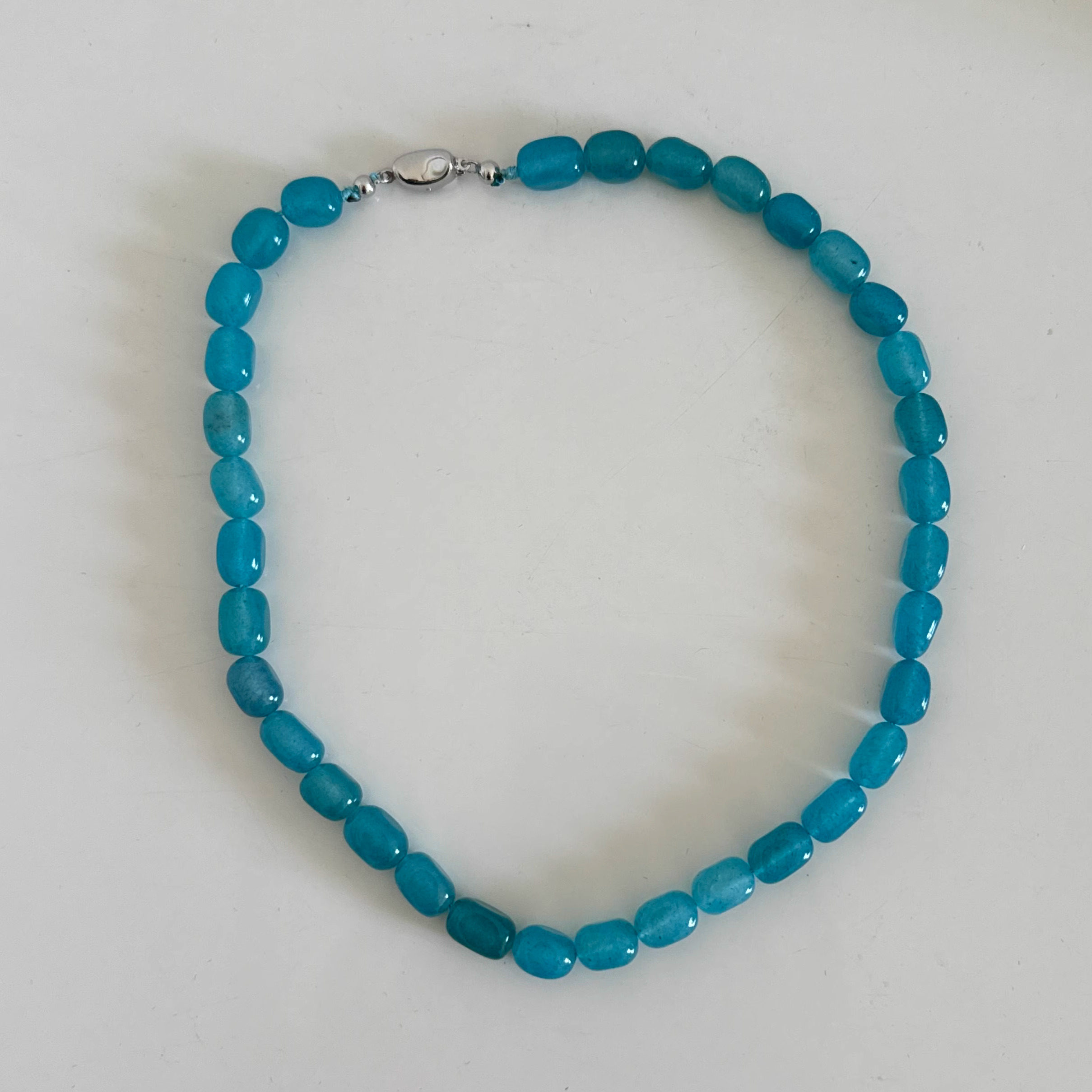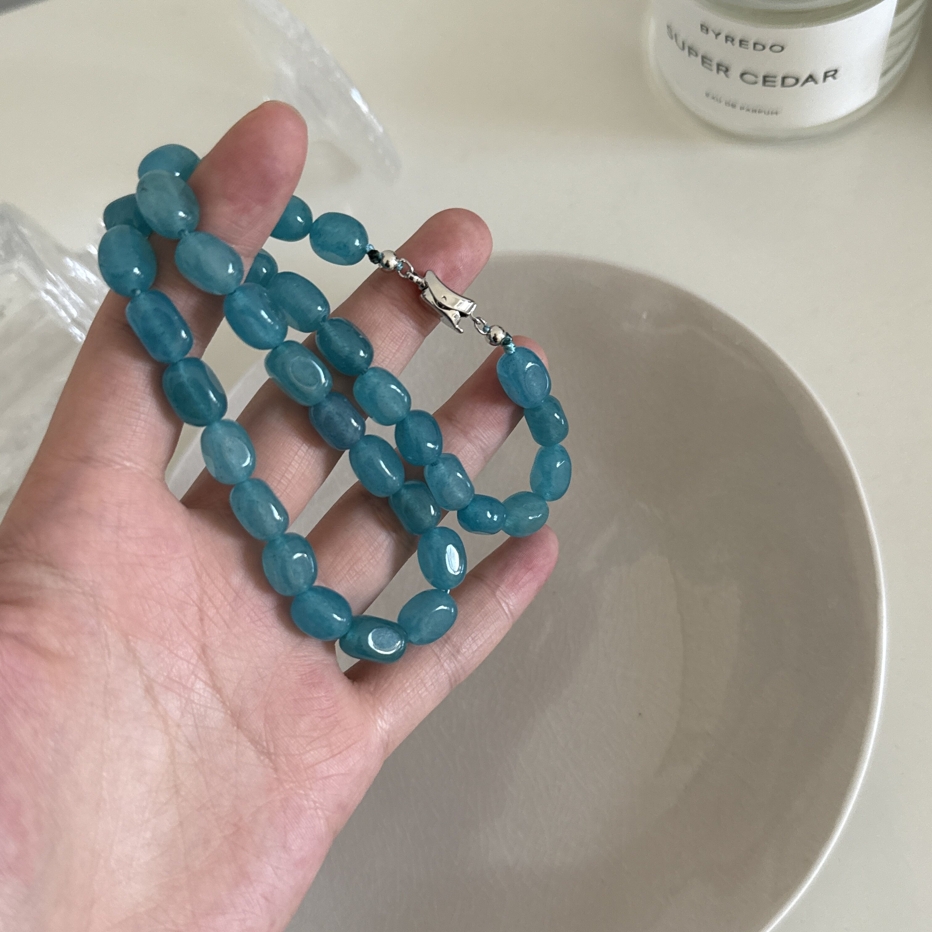 新款蓝色玉髓异形串珠不规则项链女中式显白玛瑙天然石小众锁骨链