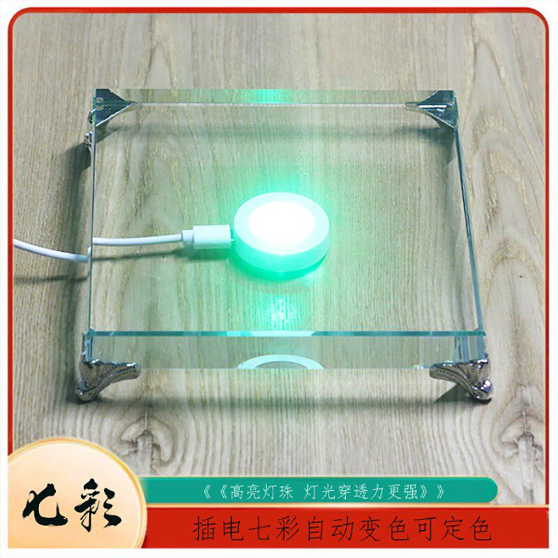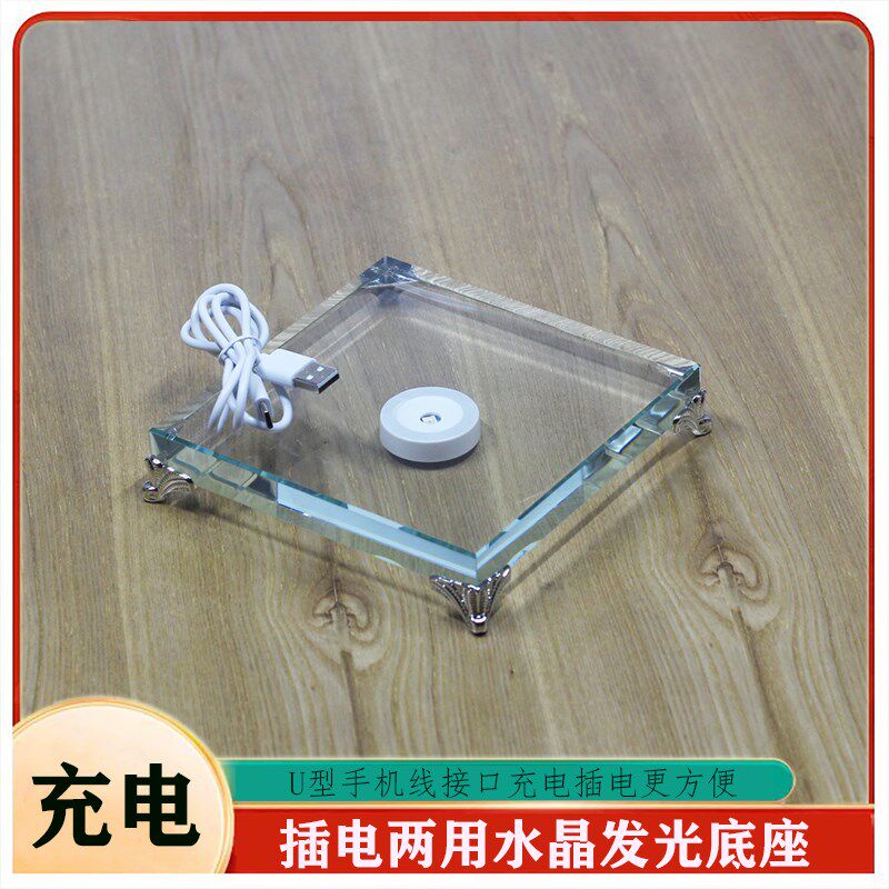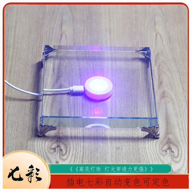 水晶发光底座灯充电插电七彩变色黄白光加高LED灯光方形摆件托底