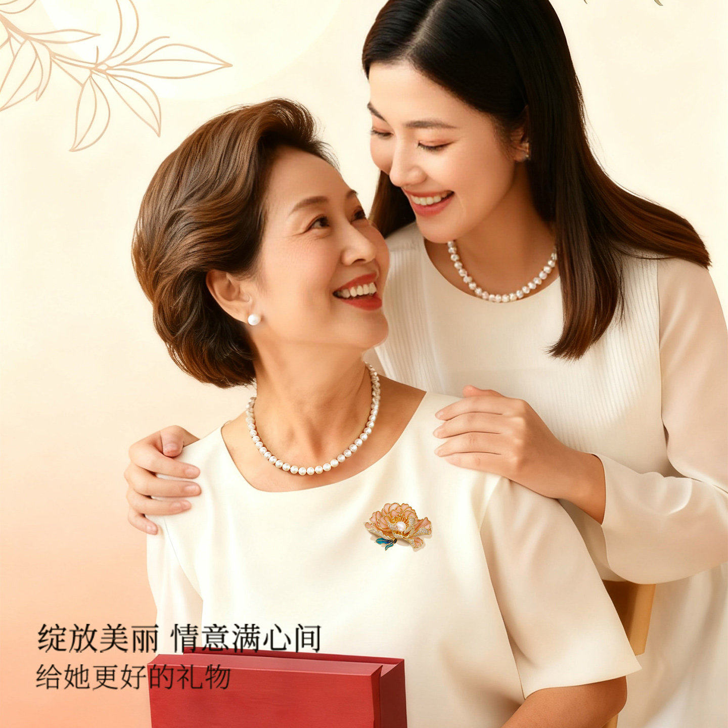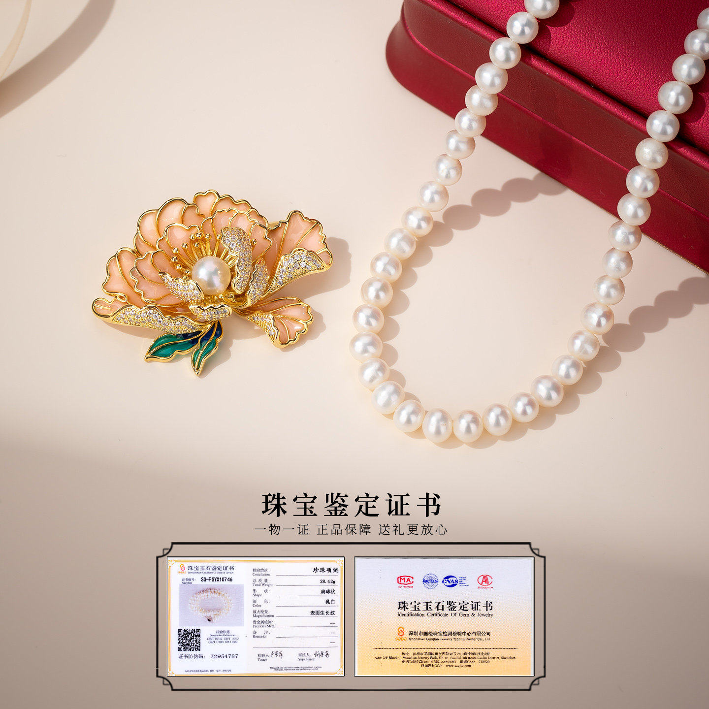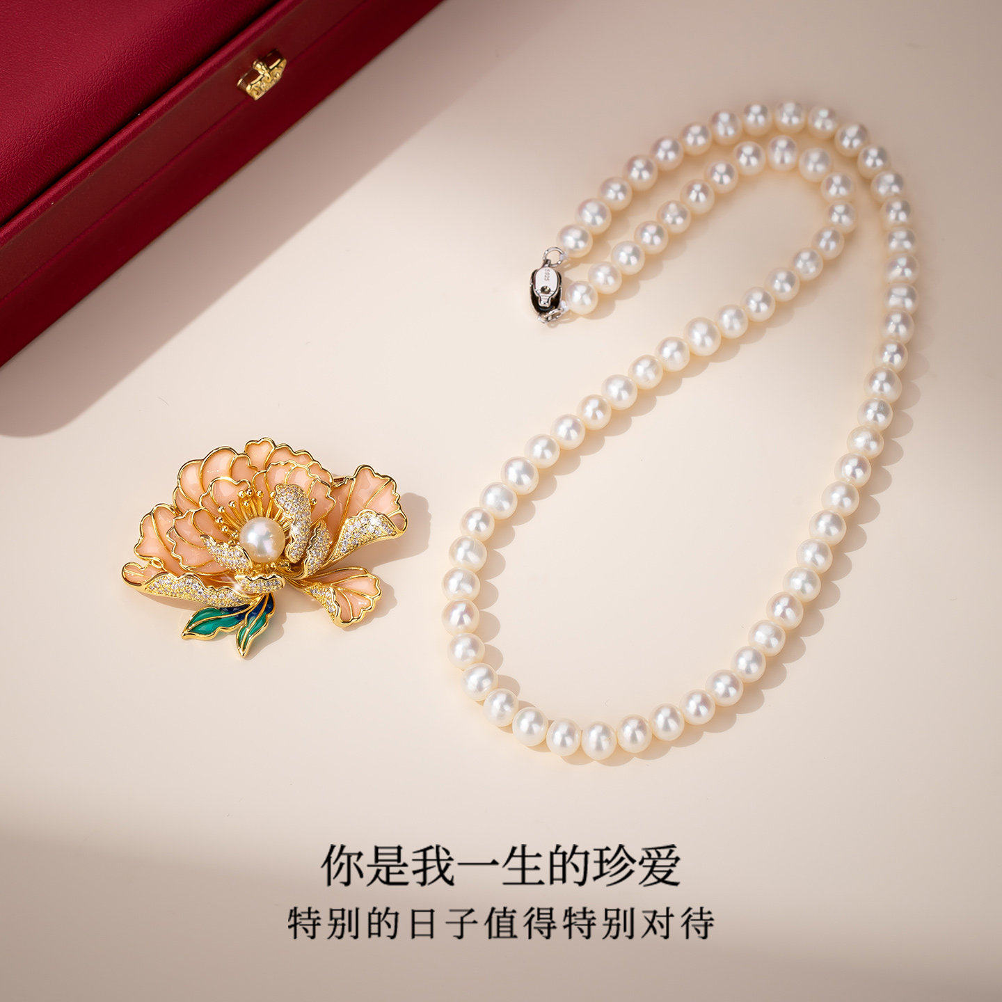 母亲节礼物淡水珍珠项链牡丹花胸针套装高档精致送妈妈长辈首饰