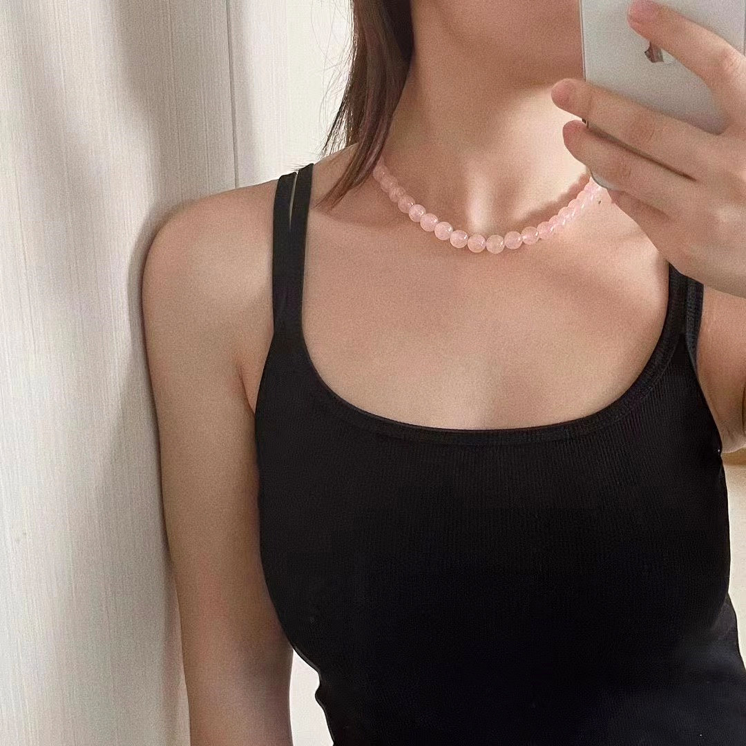 原创简约天然马粉水晶项链原色冰芙蓉石客定款女锁骨链随手拍轻奢