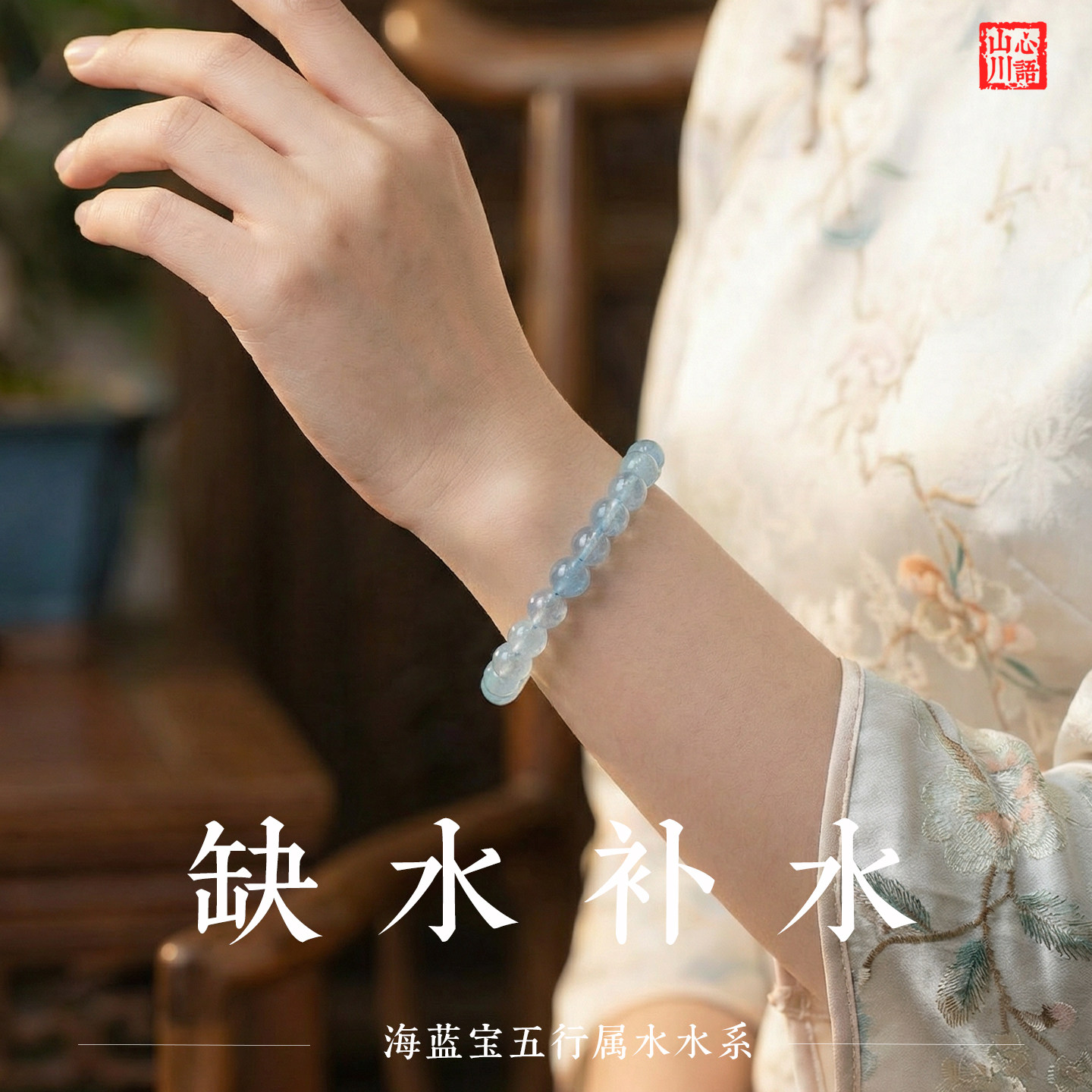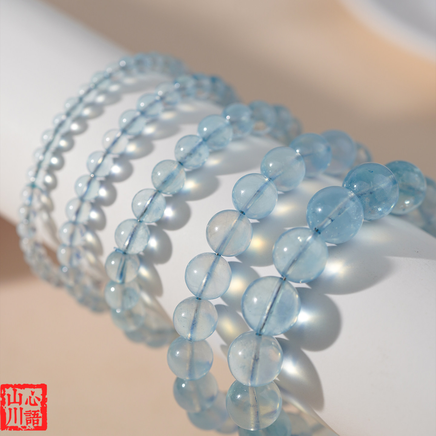 天然海蓝宝蓝色宝石手链本命年缺水补水链10mm单珠高级感纯色手串