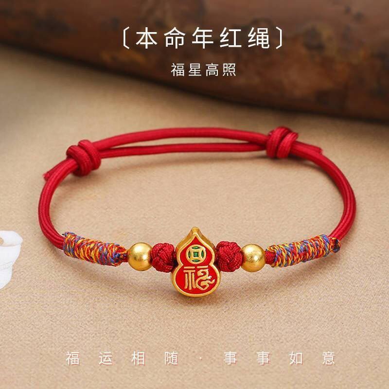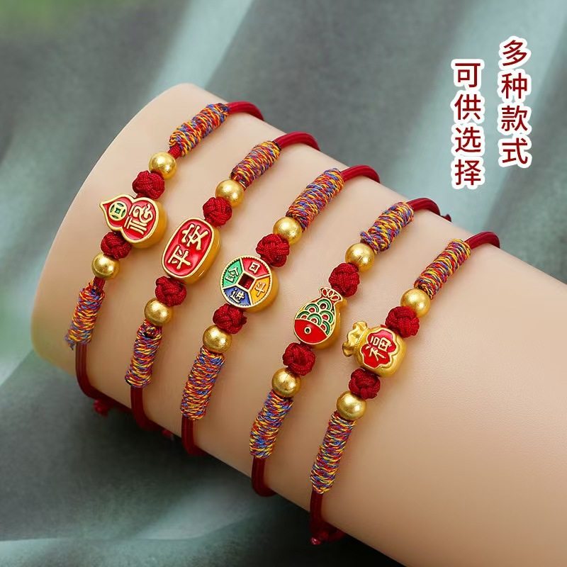 新款端午节五彩绳手工编织电镀哑金配饰小礼品本命年红绳手链手绳