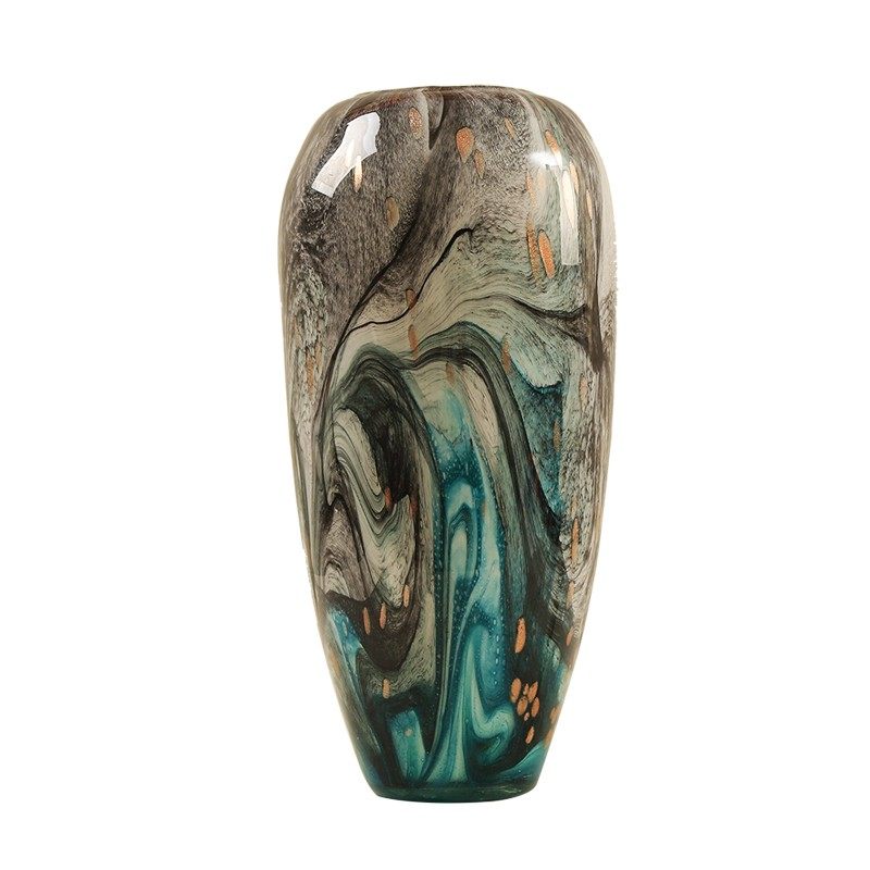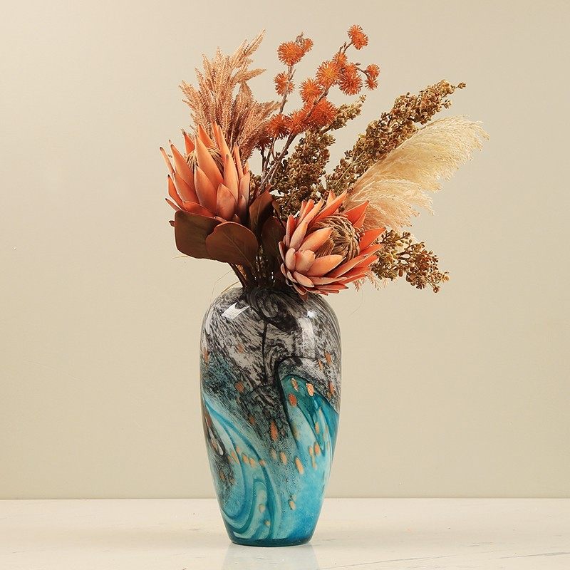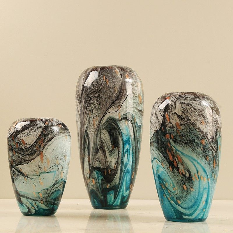 现代轻奢水墨画琉璃花瓶艺术摆件玄关餐桌装饰客厅插花Z花器样板