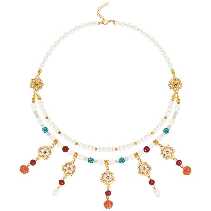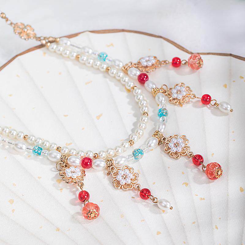 搭配汉服马面裙的配饰项链女童古风璎珞仿珍珠儿童学校表演出吊坠