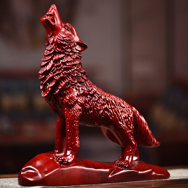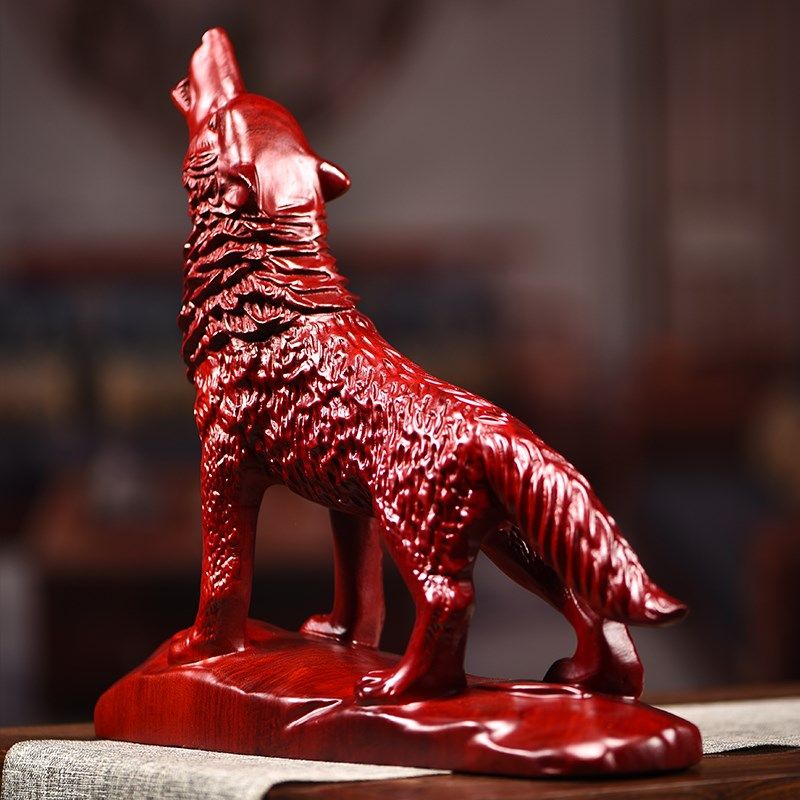 木雕狼摆件实木狼摆件招财领头狼摆件客厅办公室茶桌装饰家工艺品