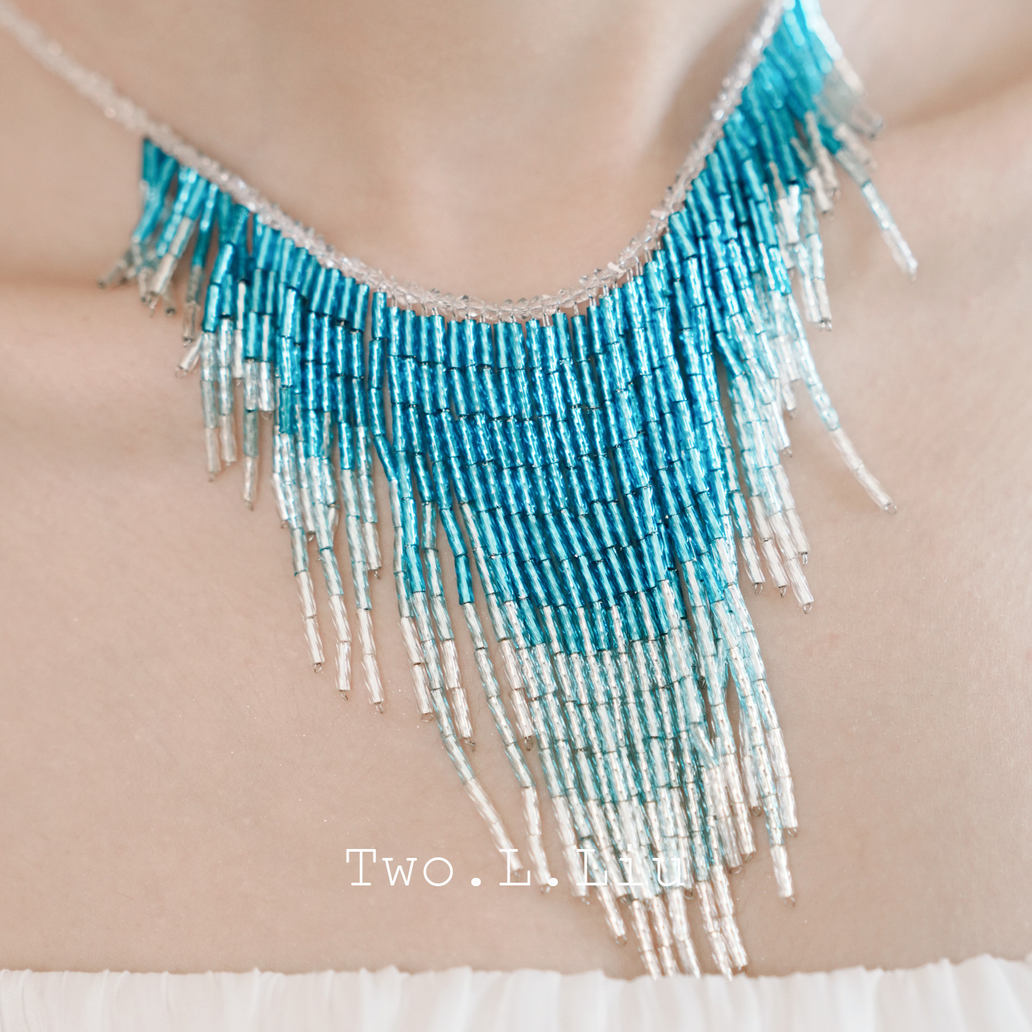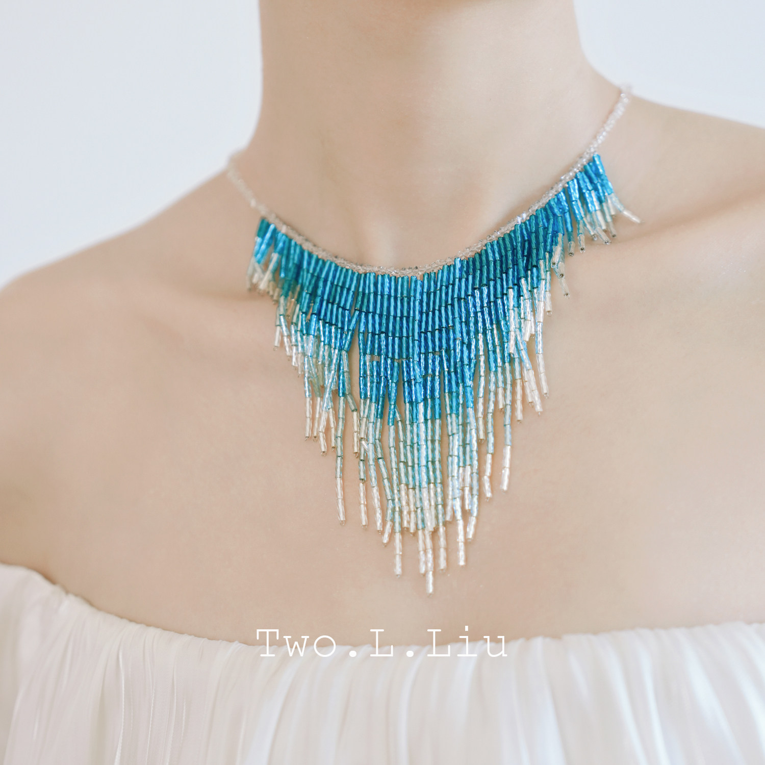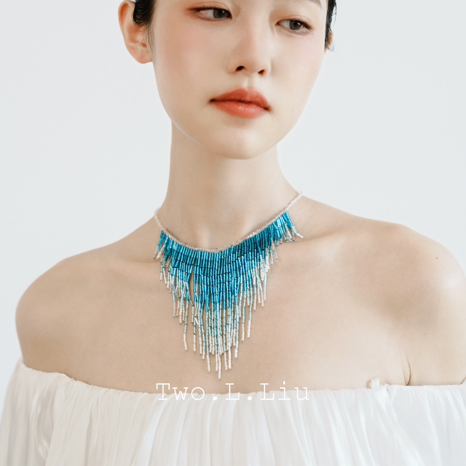 Two.L.Liu只此青绿新中式系列原创高级蓝色流苏项链气质轻奢饰品