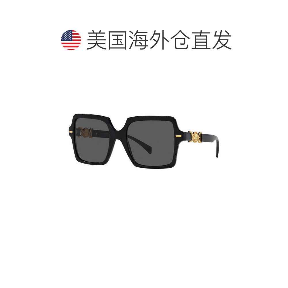 自营 Versace方形全边太阳镜,黑框,深灰色镜片Ve4441Gb1/87-黑