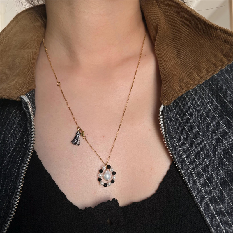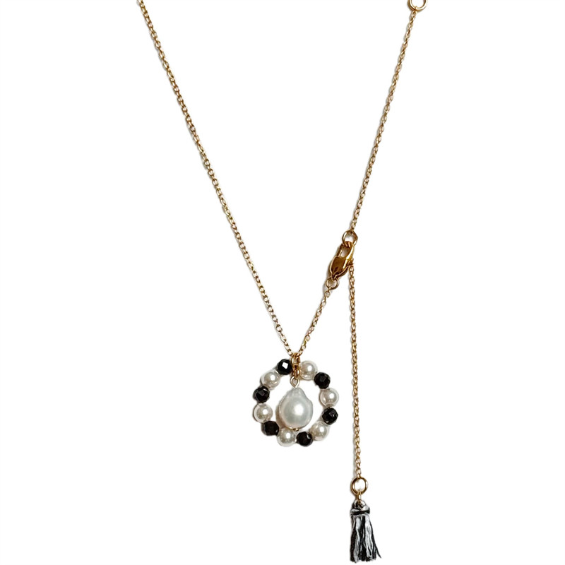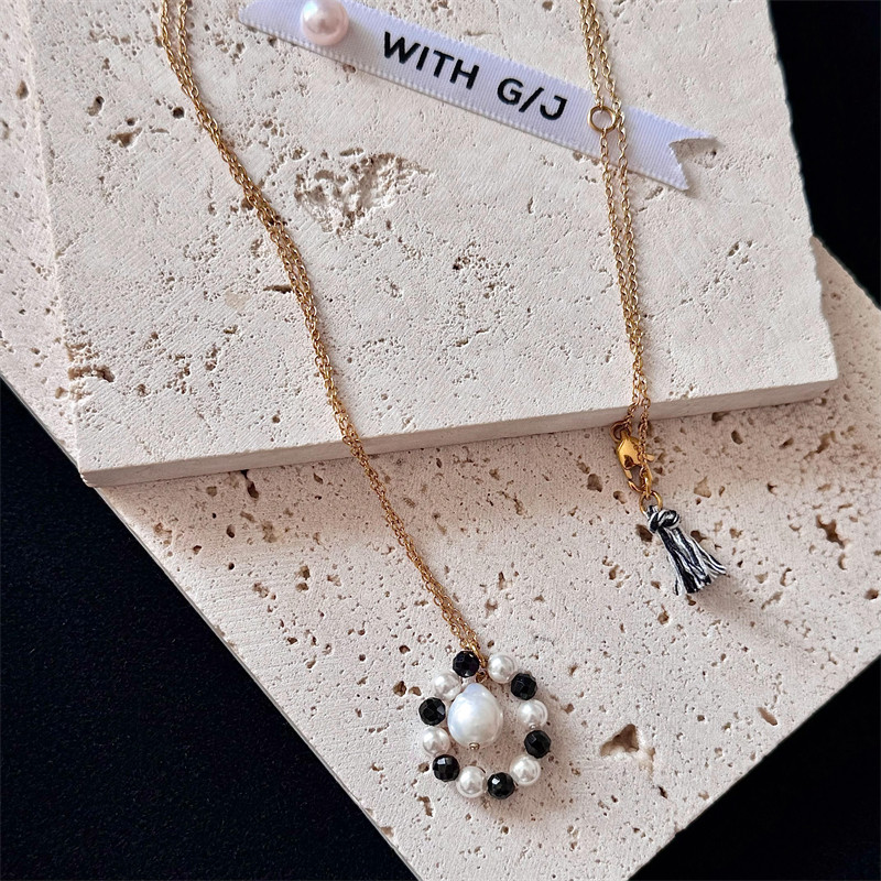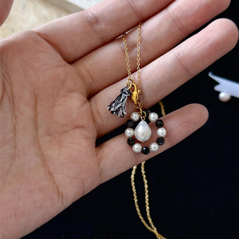 WITH GJ 天然水滴珍珠经典黑白色项链女藏式流苏个性原创毛衣链