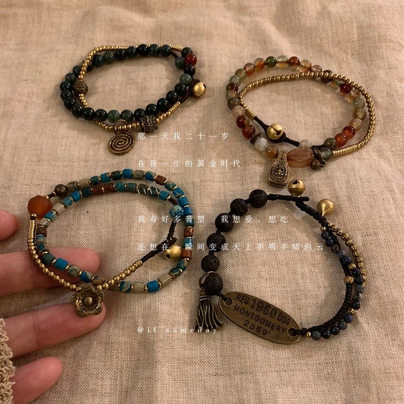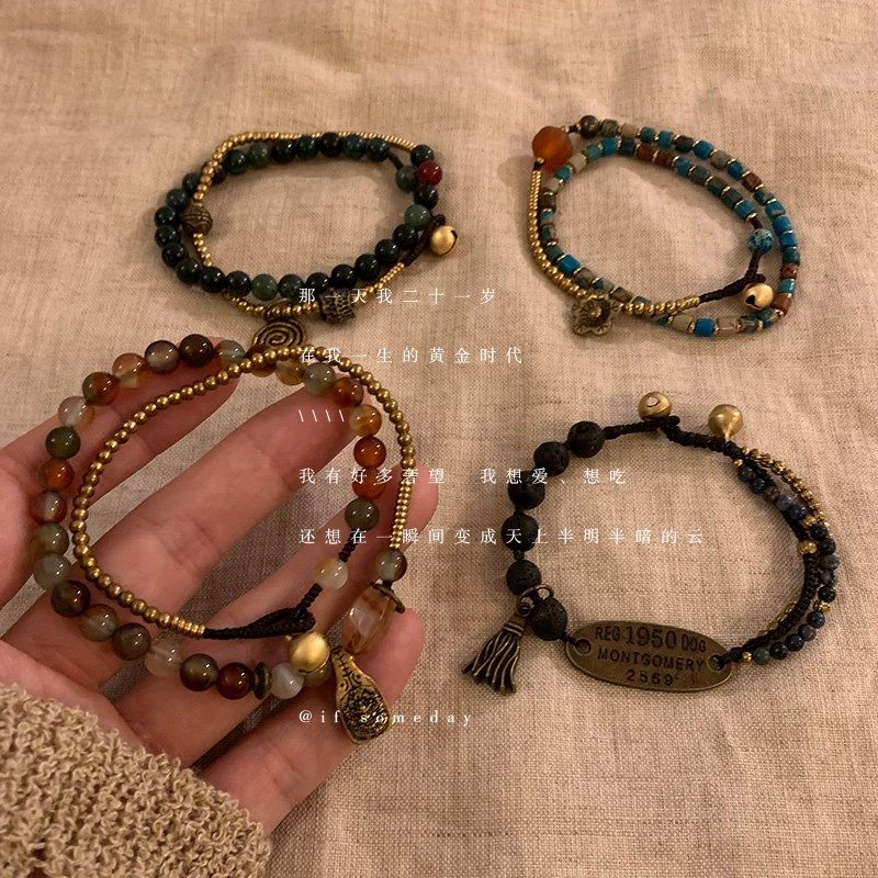 手作 天然石手工串珠双圈手链轻奢小众精致夏天百搭国风手饰手串