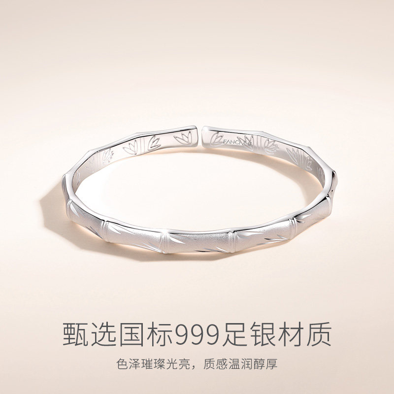 Fanci范琦竹影足银手镯999足银设计感小众女生生日礼物