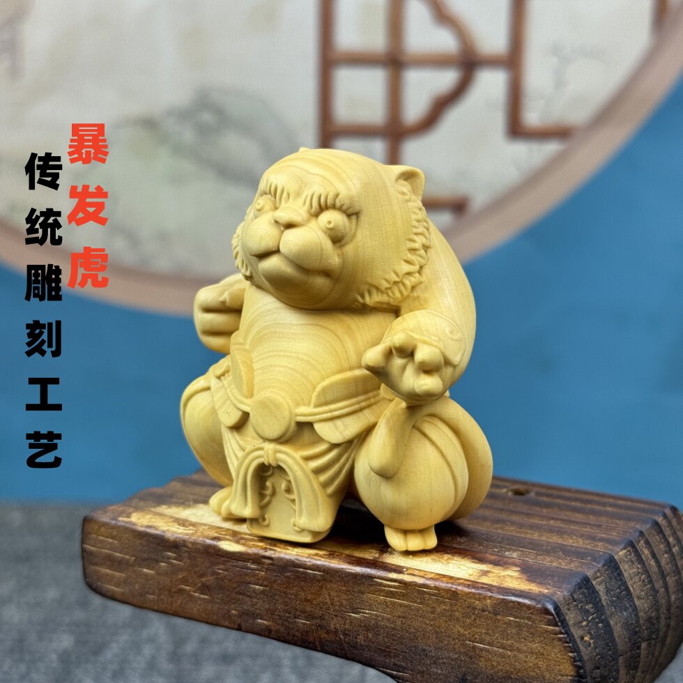 黄杨木雕生肖虎文玩手把件随身盘玩物件家居家用摆件送礼品装饰品