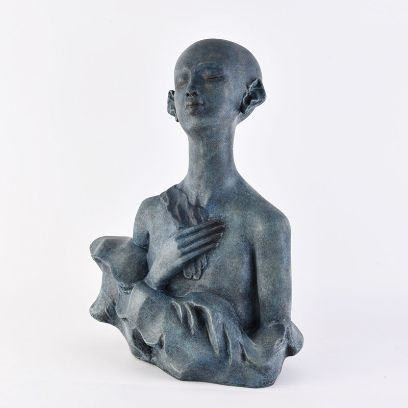 现代简约蓝色人像雕塑艺术摆件样板房售楼处人物摆设展柜软装饰品