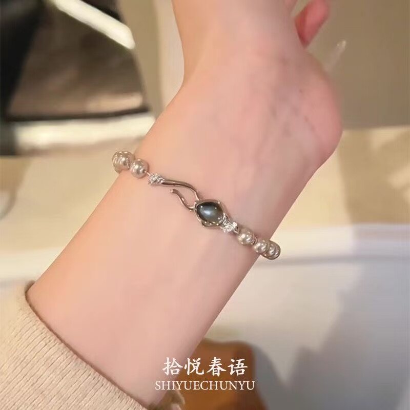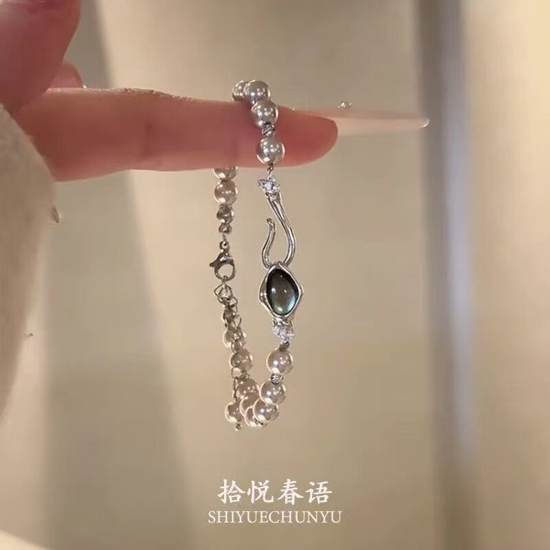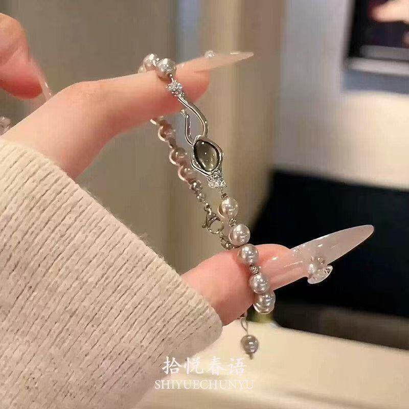 「月落星河」复古清冷感灰色珍珠手链法式温柔时尚气质手饰女ins