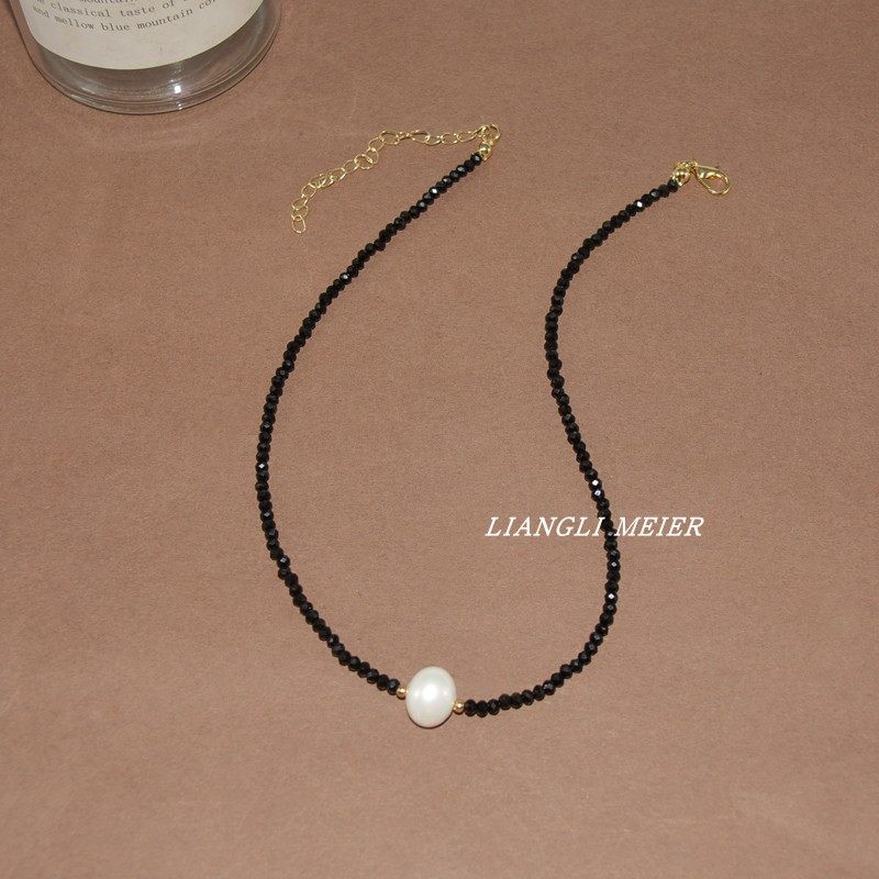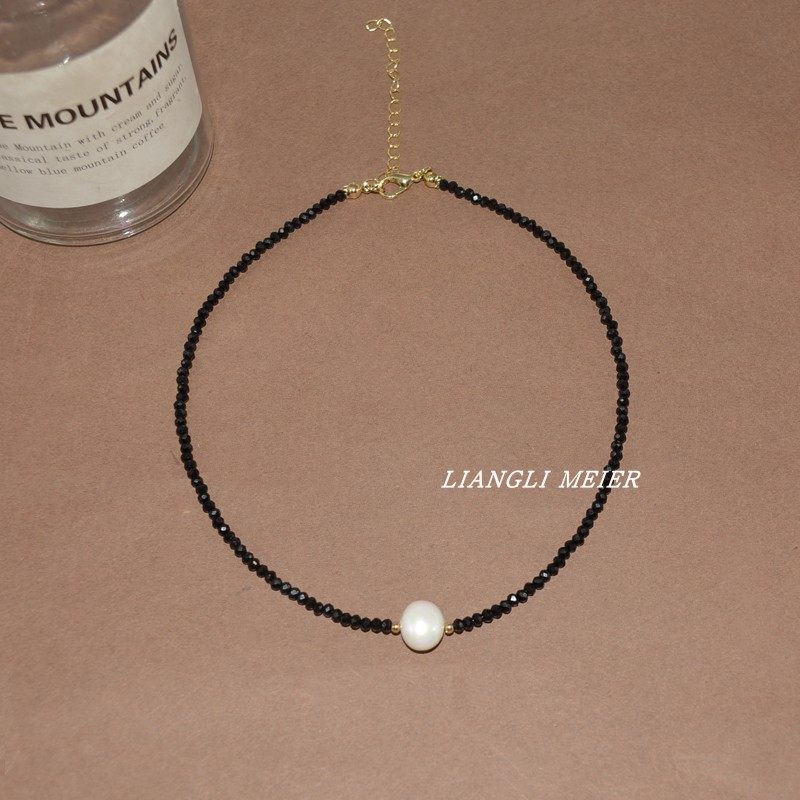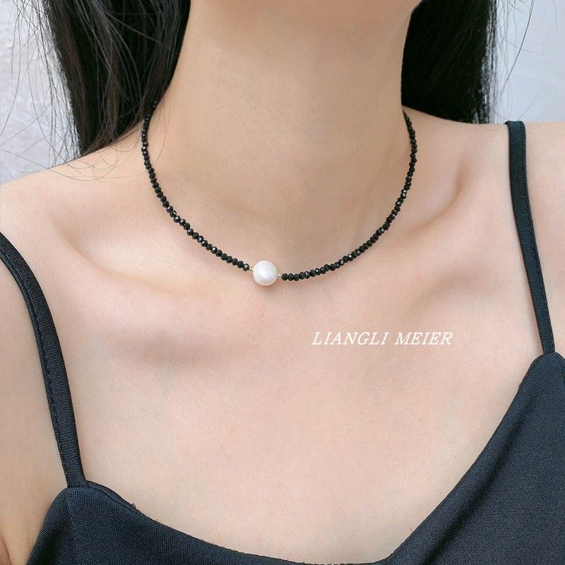 复古黑水晶简约细锁骨链淡水珍珠高级感choker项链女轻奢小众设计