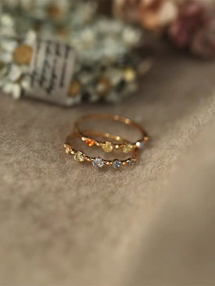早晨的清新 明媚之夏深深浅浅蓝橘渐变温暖色系925纯银镀金戒指女