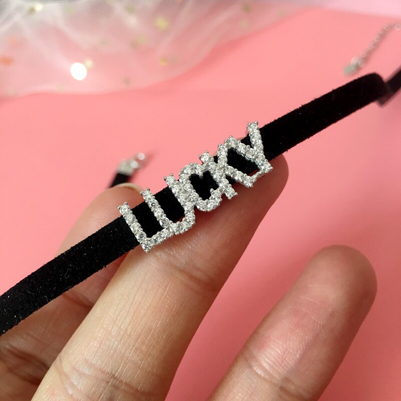 925纯银Lucky字母choker项圈女项链锁骨链短款颈链轻奢小众高级潮