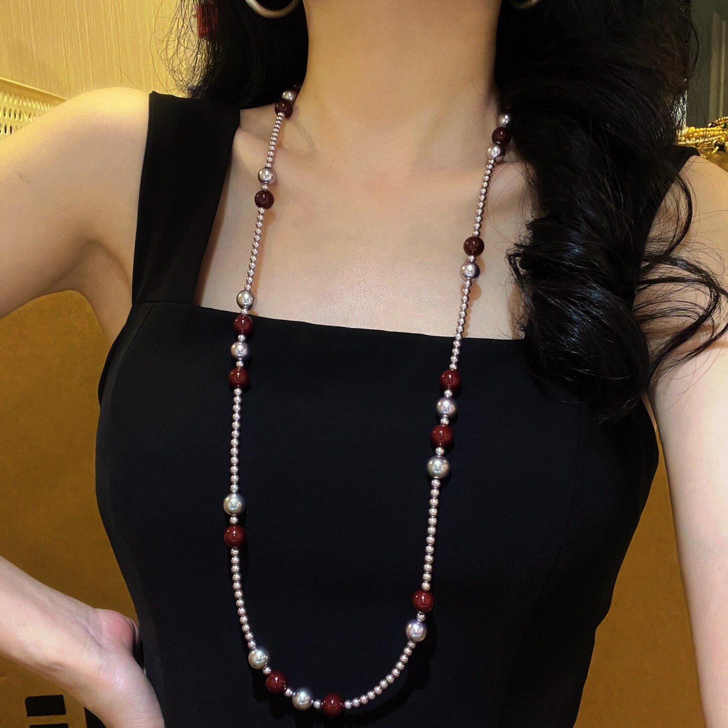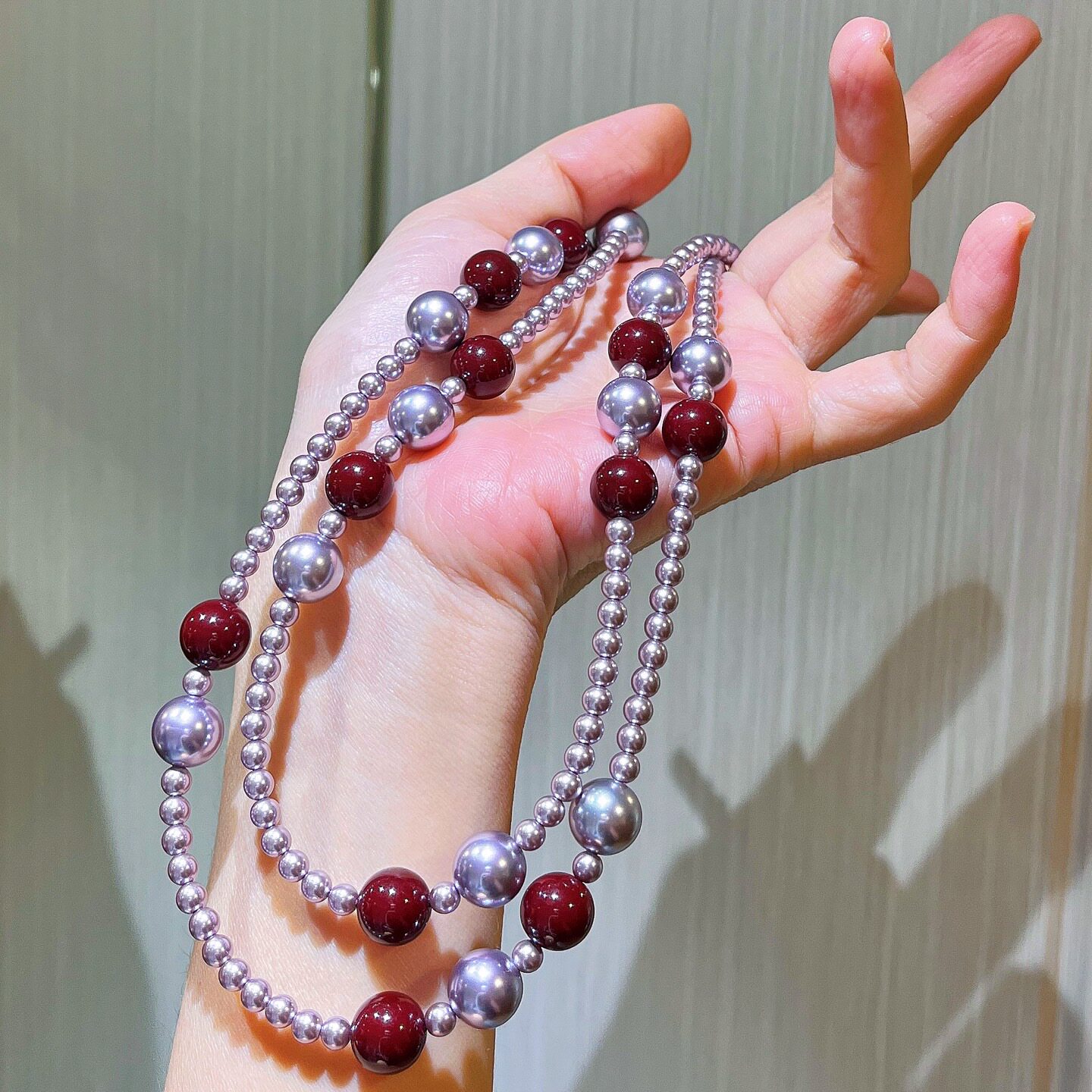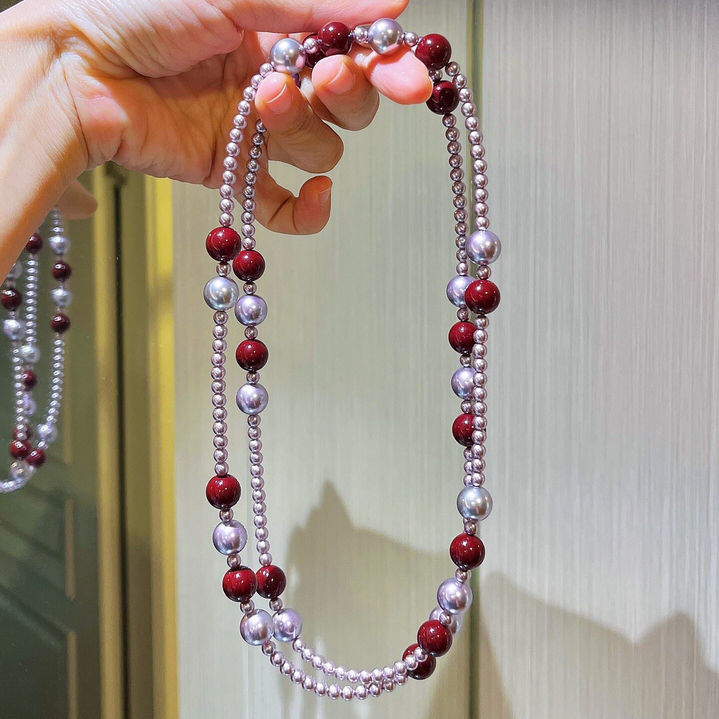 秋冬高品质紫色安可拉红色混彩施家珍珠毛衣链项链女2026新品爆款