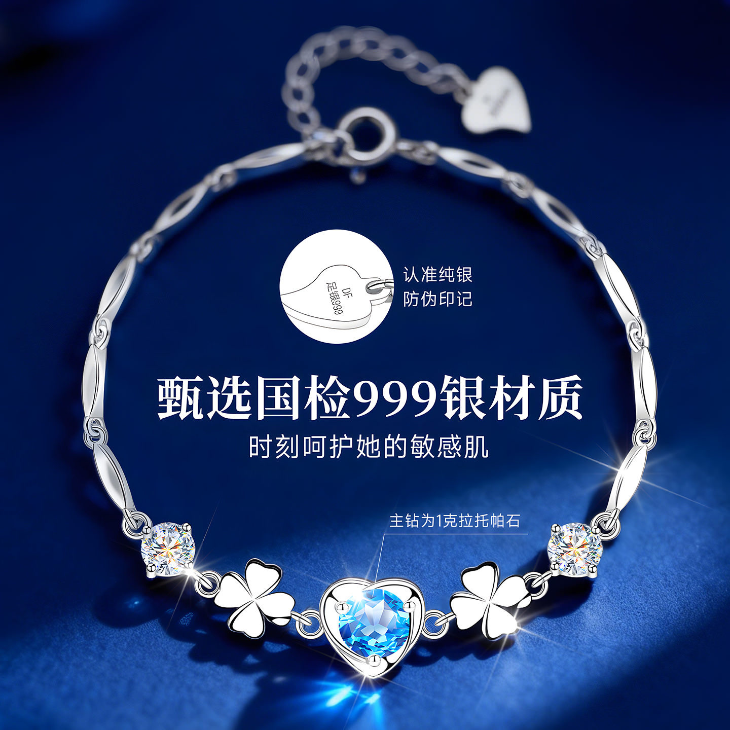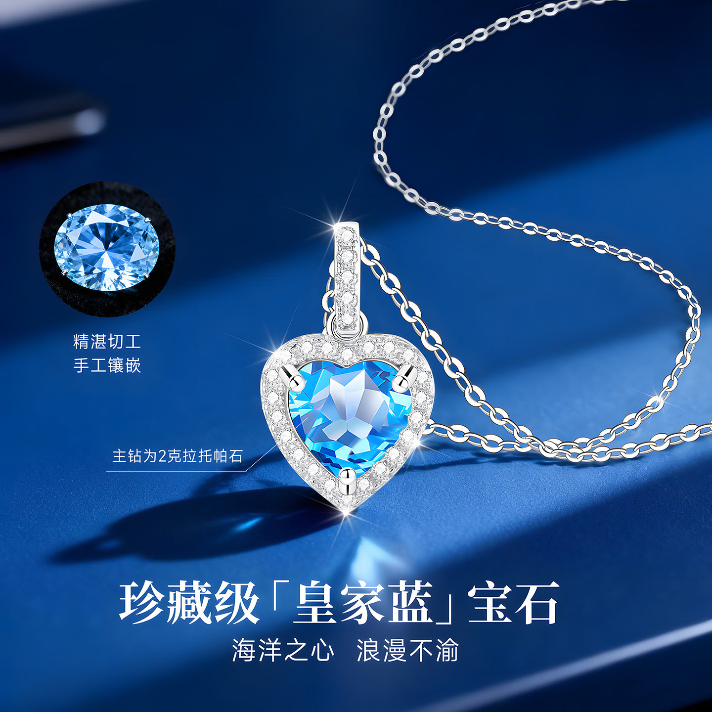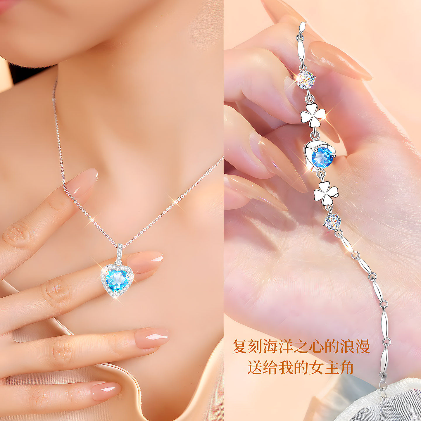 银项链手链套装女士999纯银天然蓝色宝石托帕石吊坠高级感送女友