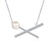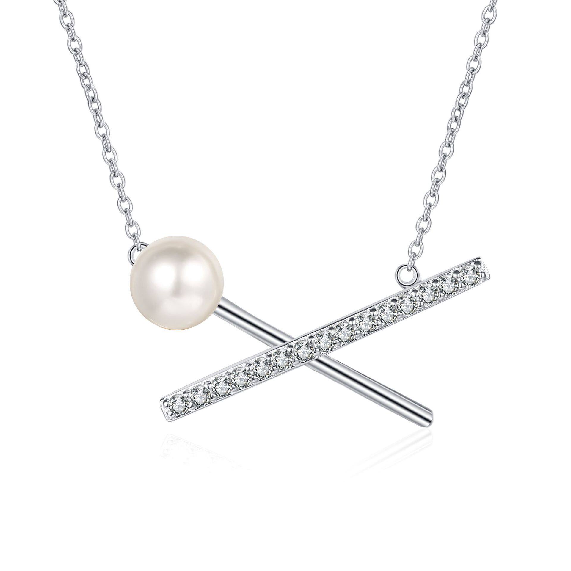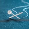 s925银镀18K金珍珠莫桑交叉款项链女简约锁骨链高级感镀PT950铂金