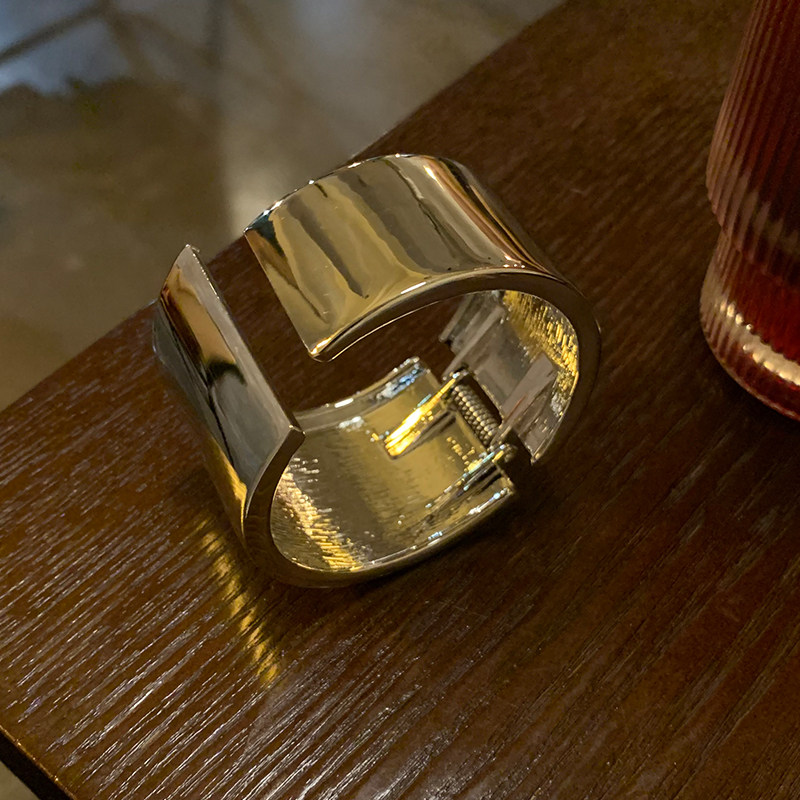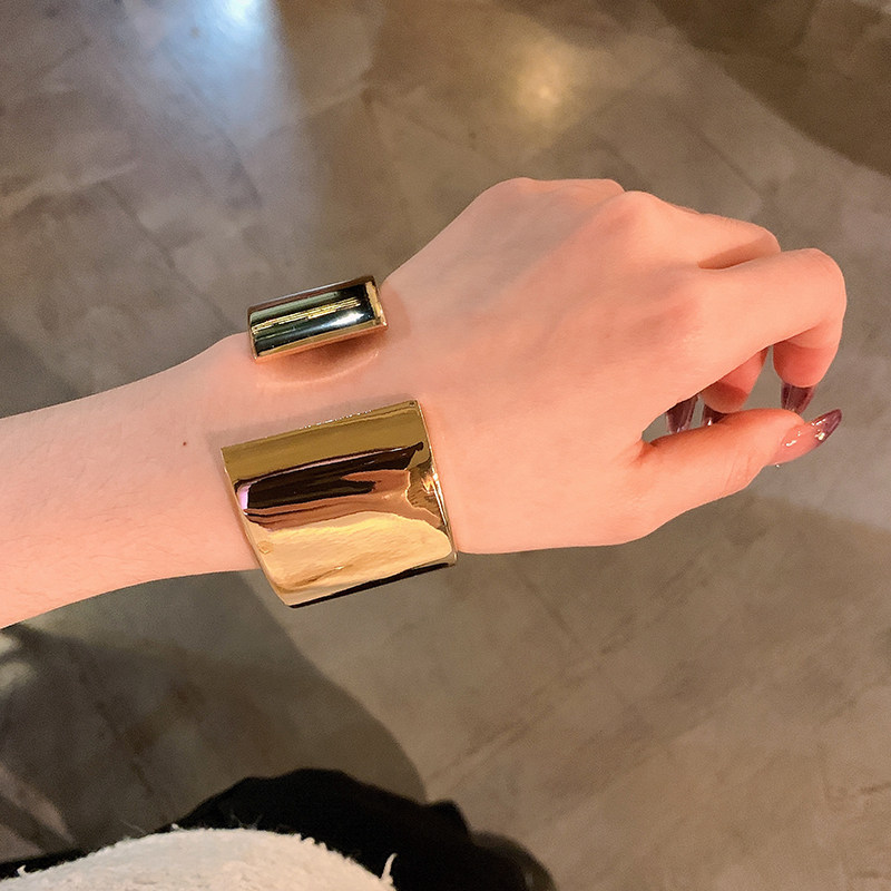 时尚个性金属夸张宽手镯欧美小众银色手环金色镯子手饰高级感配饰