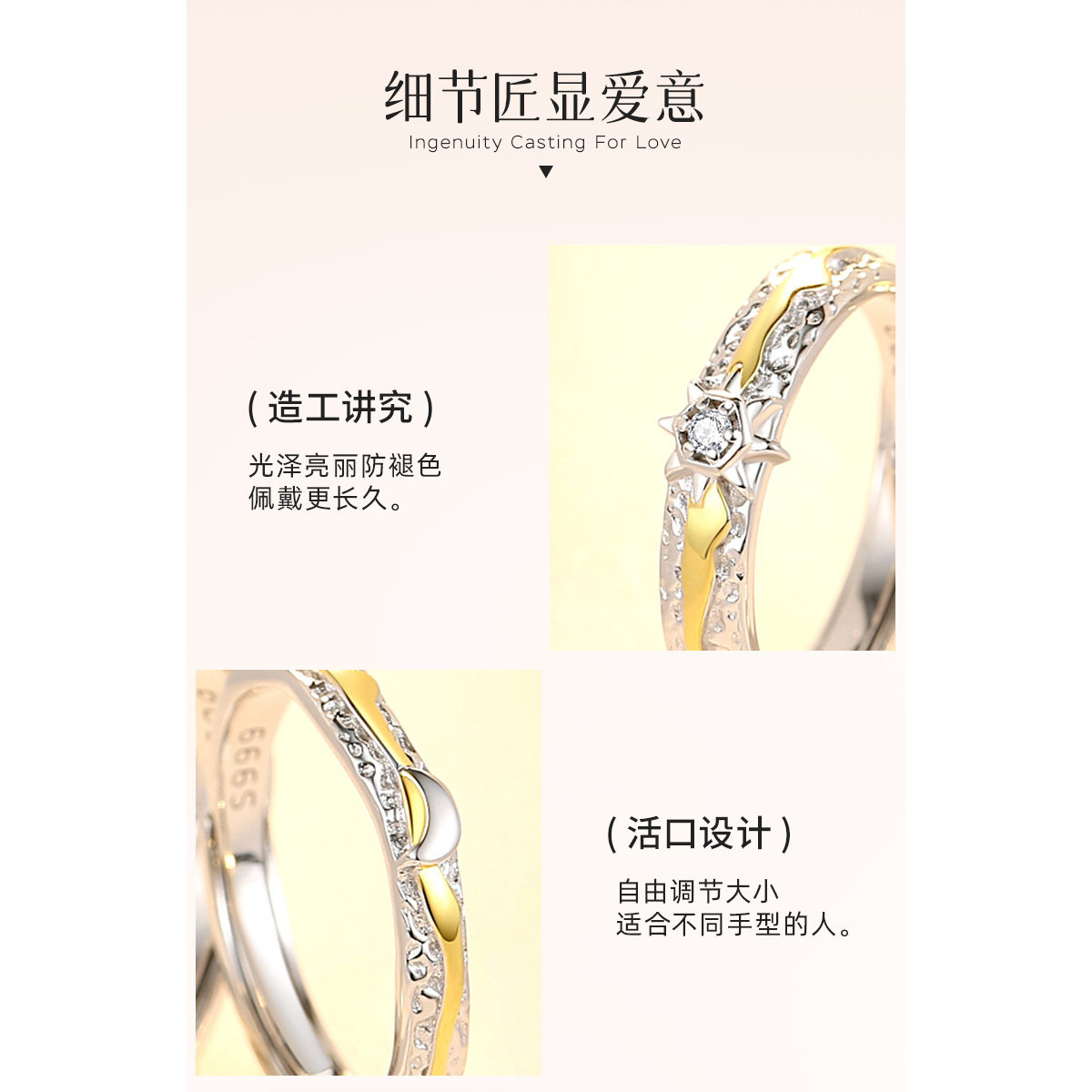 日月同辉情侣戒指 999纯银高级感太阳月亮潮流开口指环 七夕礼物