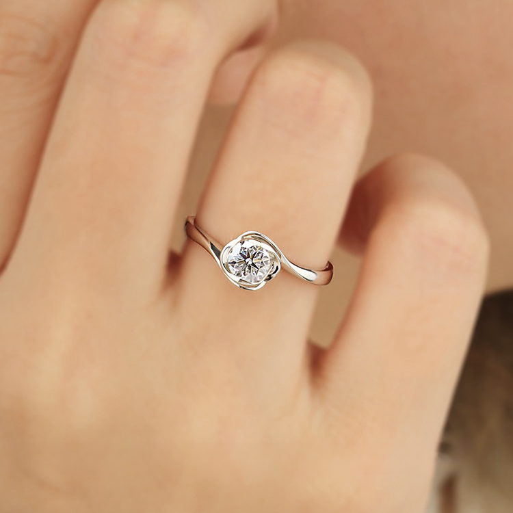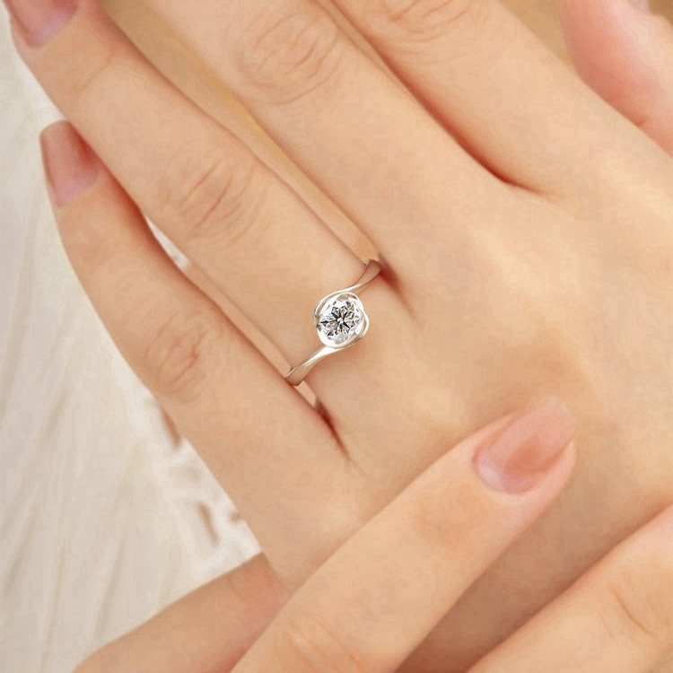 YUDANDUN莫桑戒指60分钻戒漩涡单钻扭臂花苞设计经典高级日常百搭