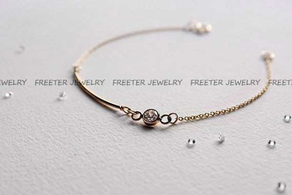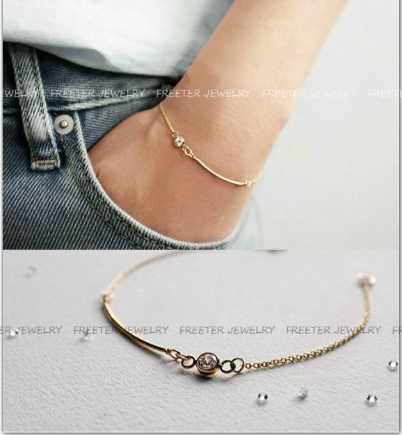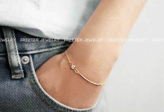 Freeter手工定制14K包金注金手链金管搭配锆石小众款清新简约手环