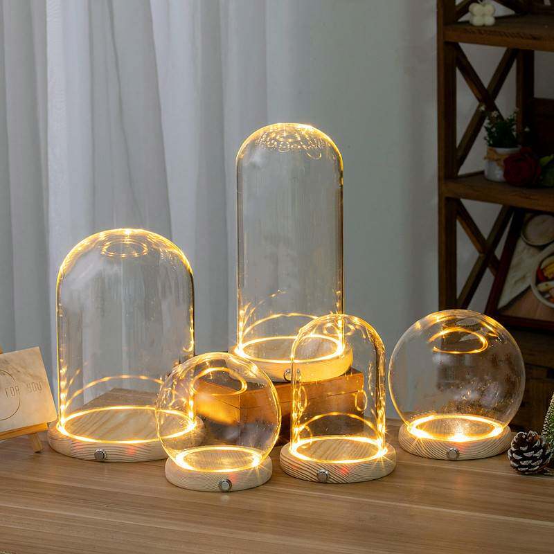 永生花玻璃罩摆件手办桌面装饰 DIY积木发光桌面小夜灯摆件侧开关