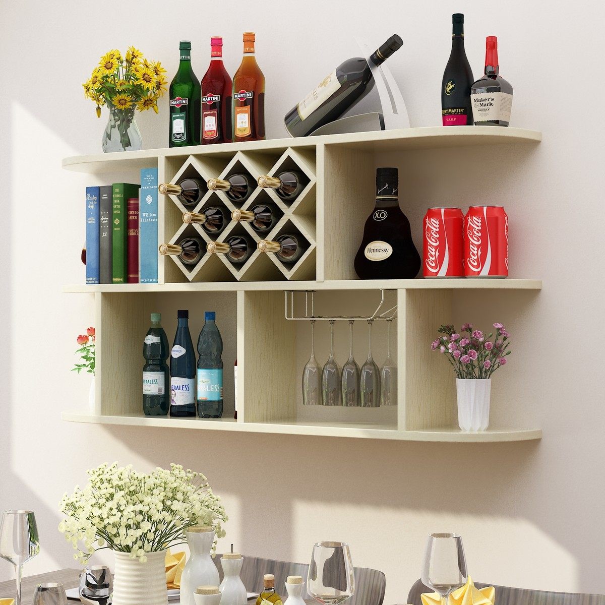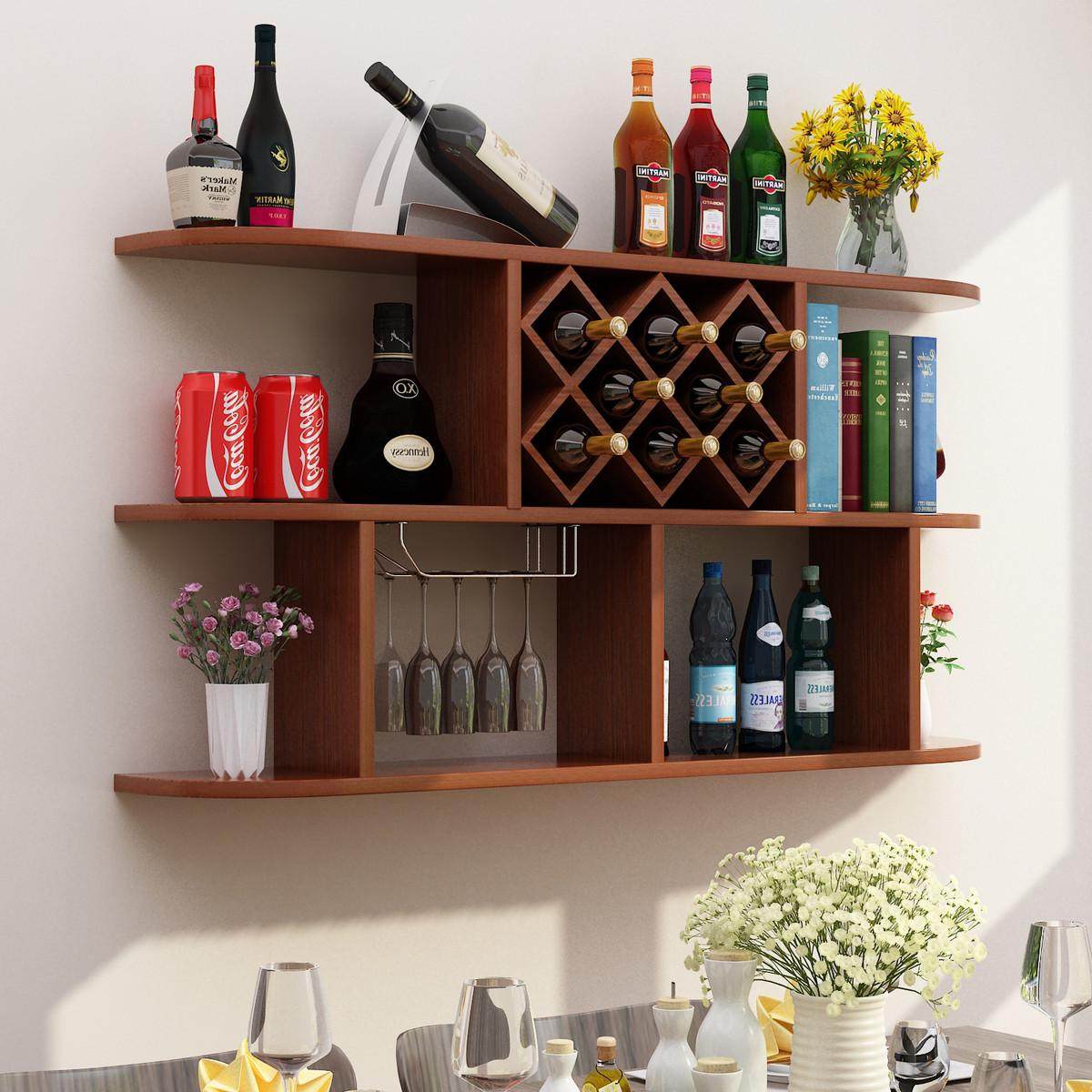 xyt批发实木墙上吊柜酒架悬挂简约格子餐厅圆角壁挂红酒柜墙壁吧