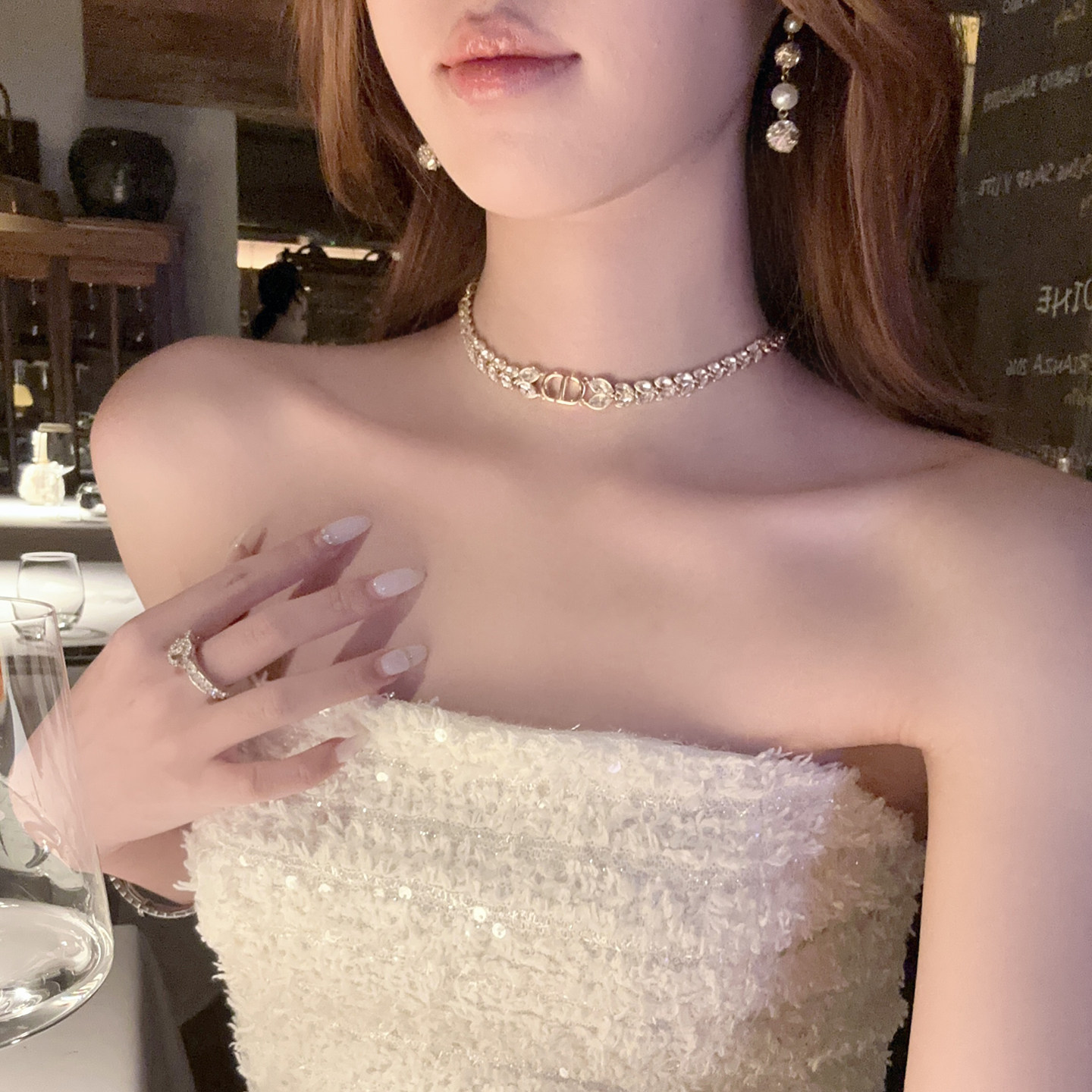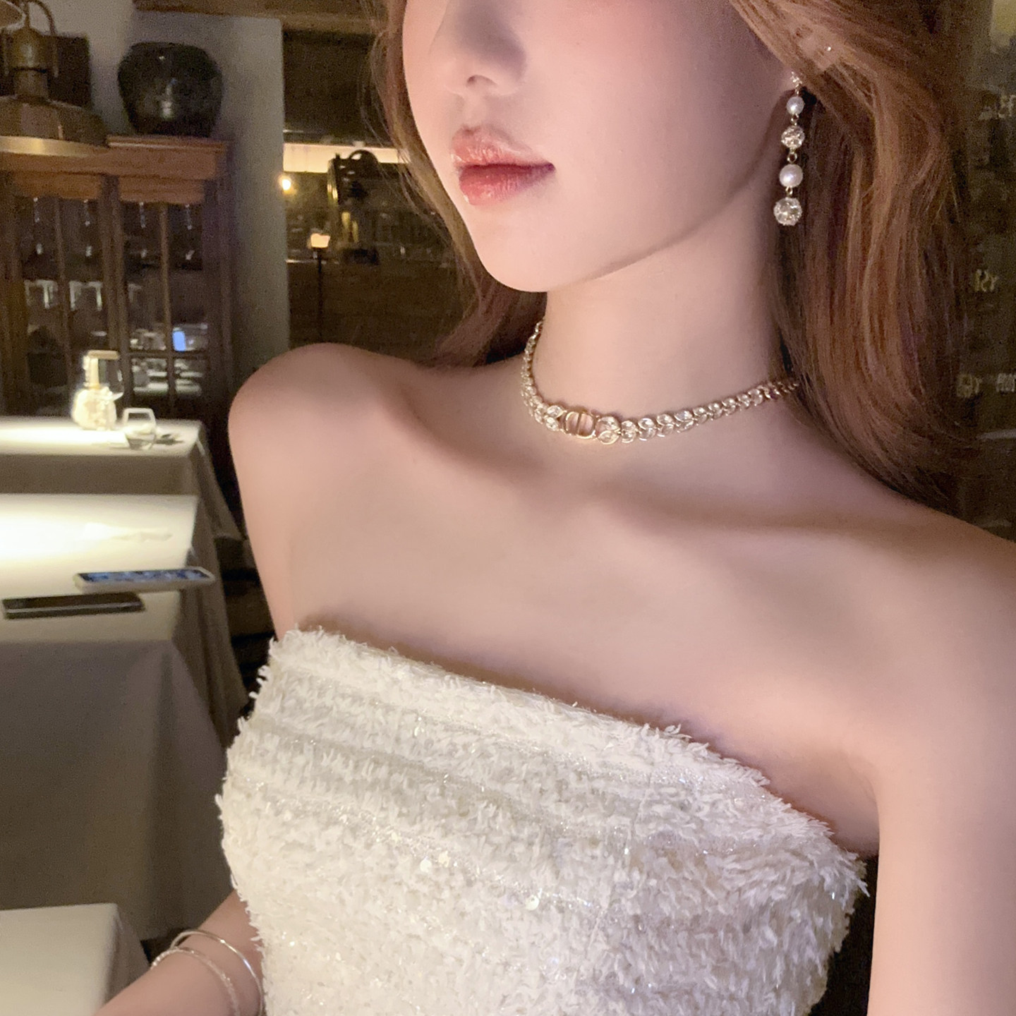 【蜜桃茶】奥莉千金 闪钻麦穗CD字母choker项链套装高级礼服配饰