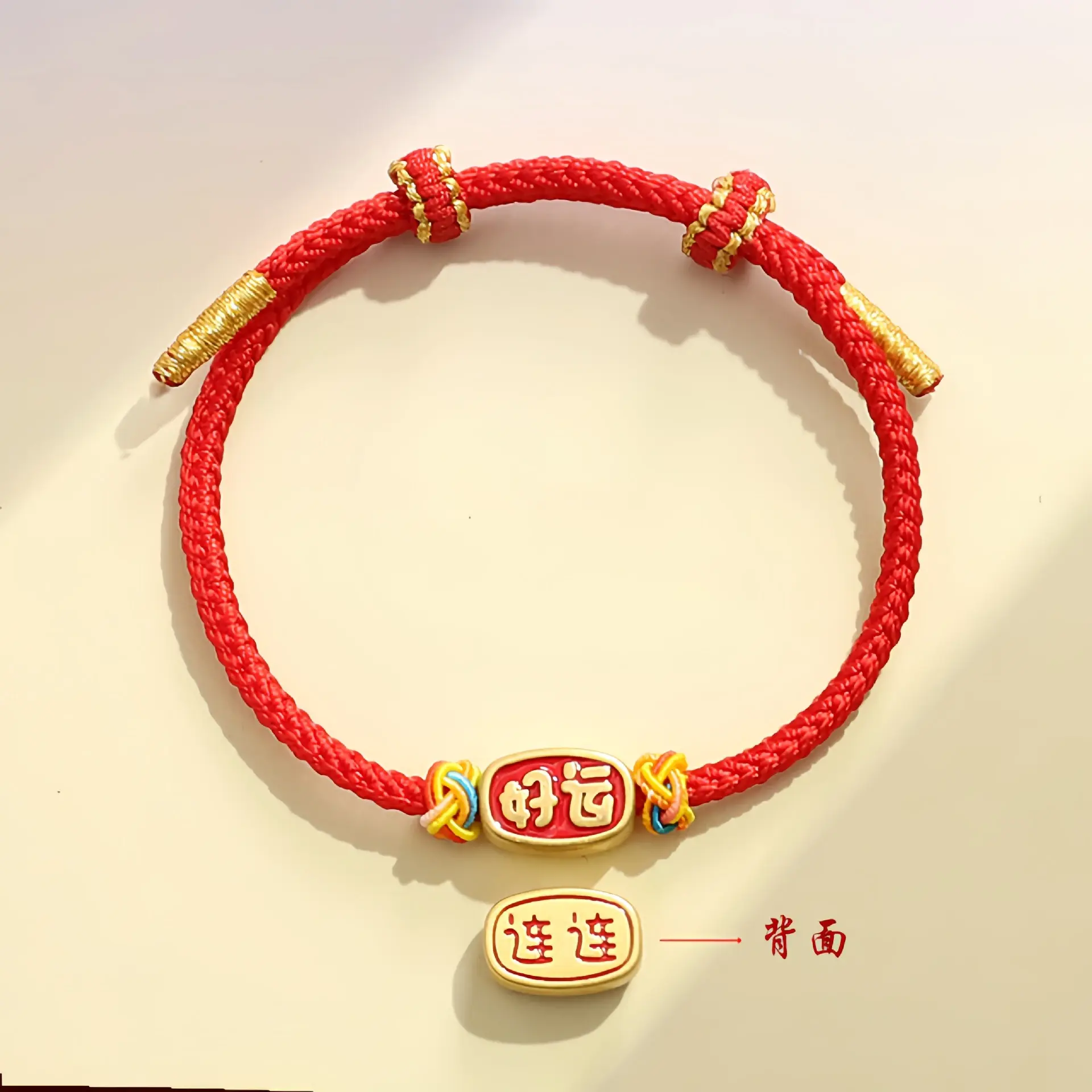 好运连连红绳手链手工diy编织本命年手绳情侣少儿平安合金手饰