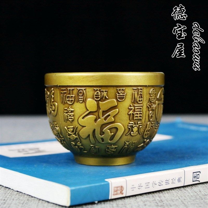 黄铜酒杯二两小酒盅雕刻中式龙凤百福杯复古白酒贡杯铜茶杯铜水杯