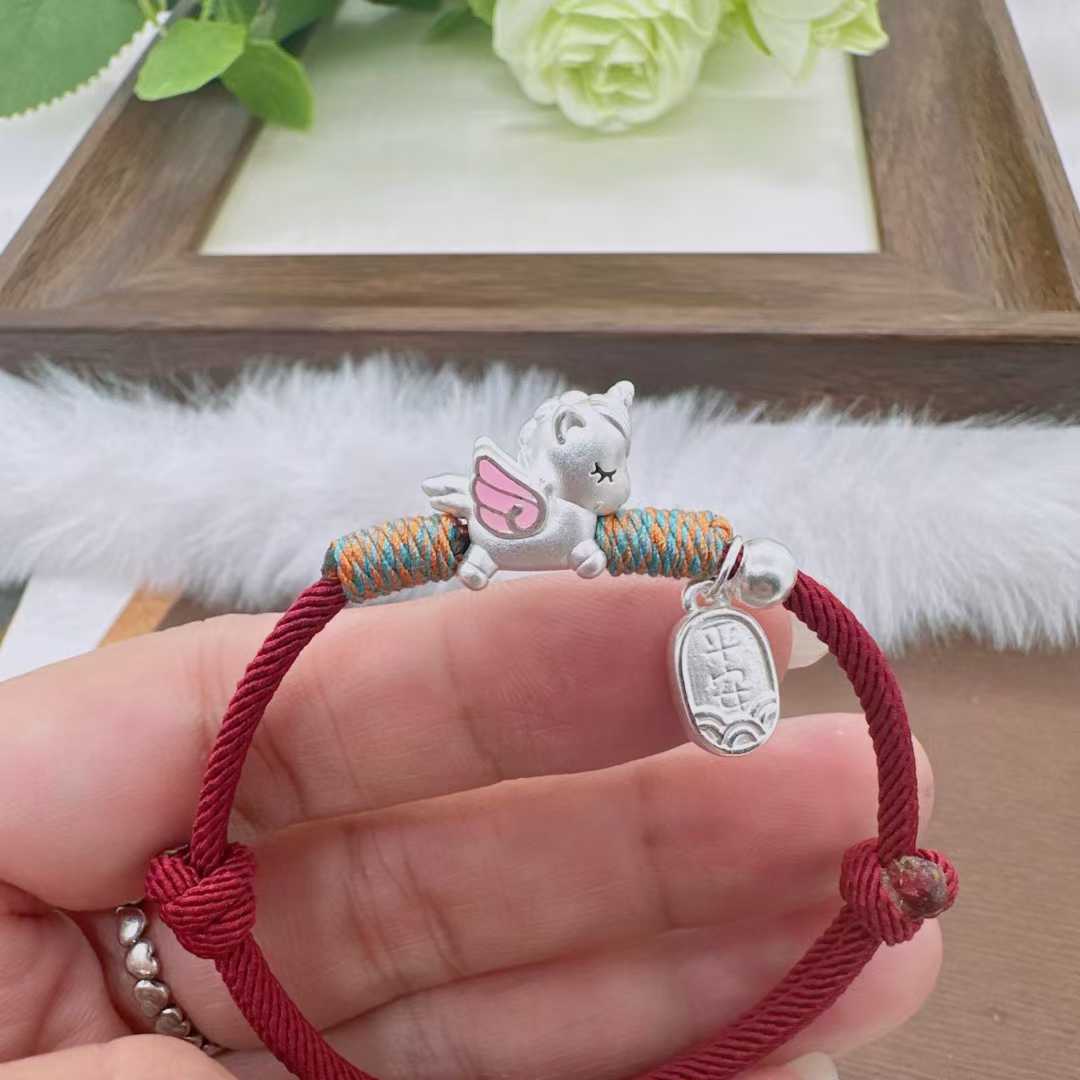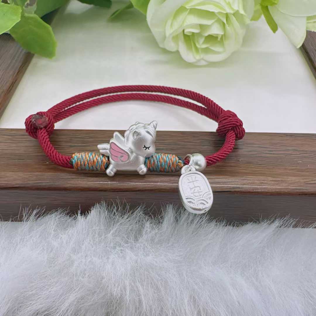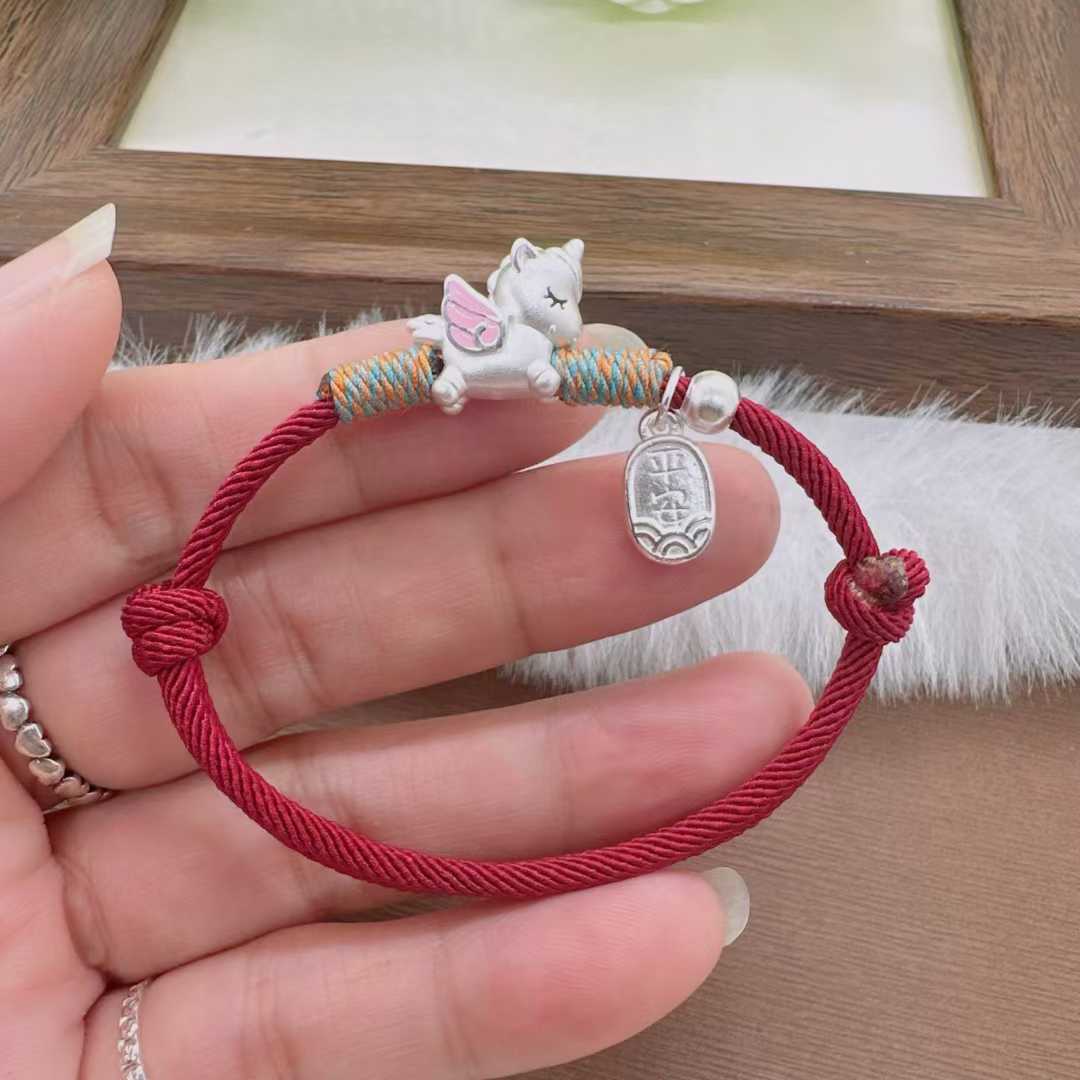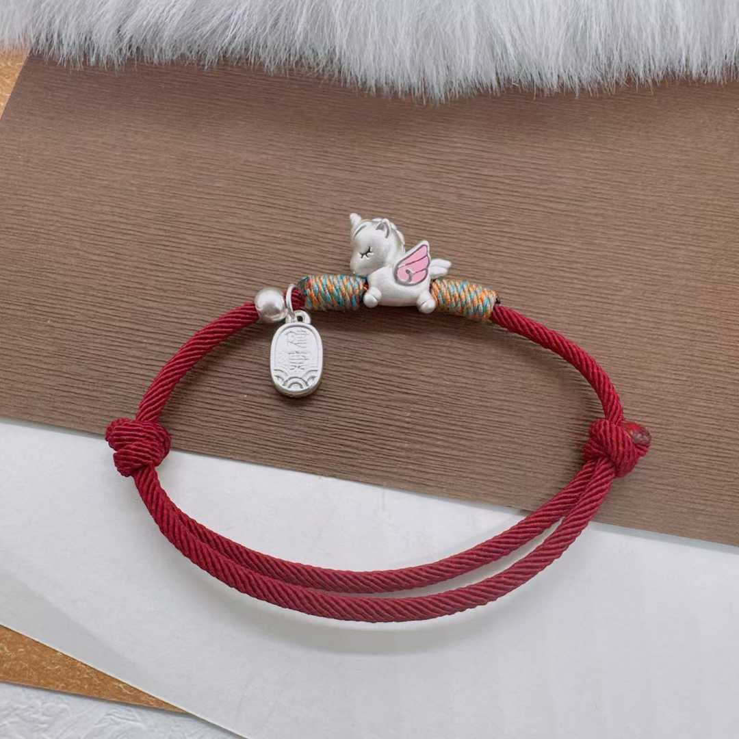 足银999纯银独角兽生肖马平安喜乐本命年手链成人儿童转运红手绳